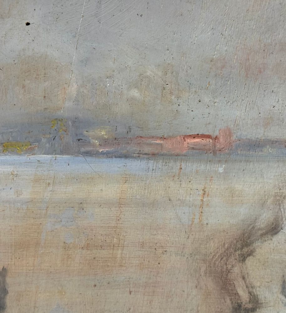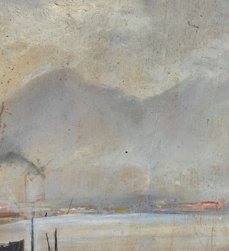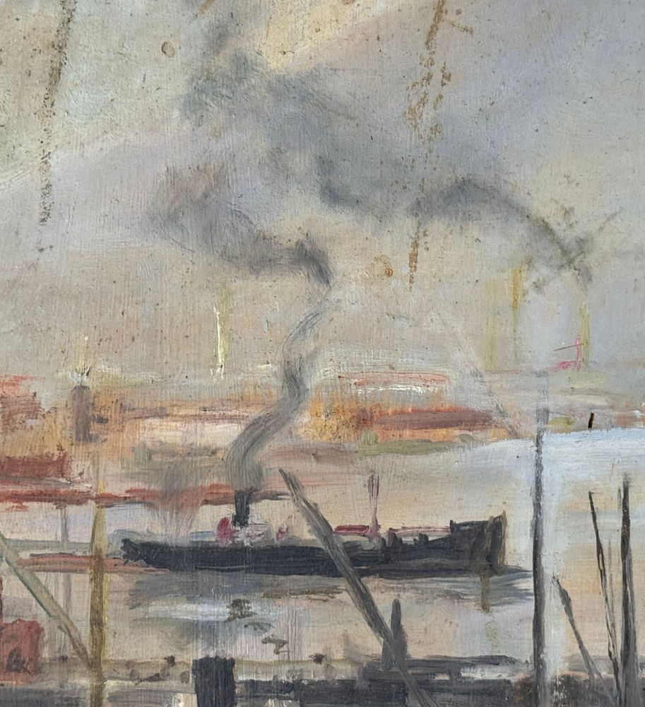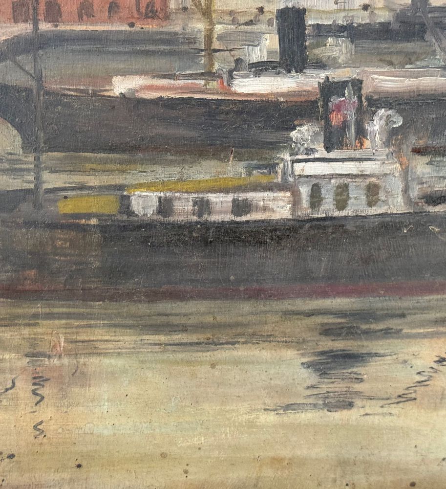 Dipinto olio su tavola, periodo XX secolo scuola napoletana, raffigurante Scorcio di porto napoletano. Dimensioni compreso cornice: 93,5x105 cm. Dimensioni interno cornice: 79x91 cm. Reca firma in basso a sinistra da artista non identificato. Opera in buone condizioni con lievi segni di vissuto come da foto allegate.
