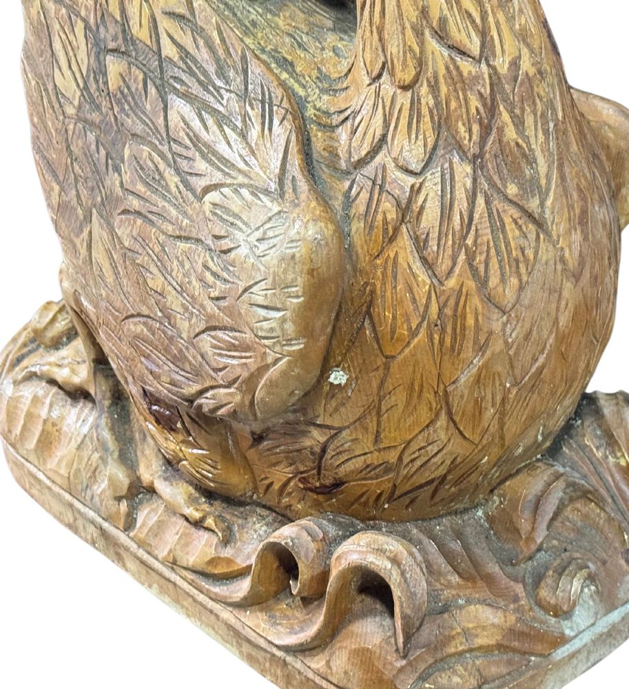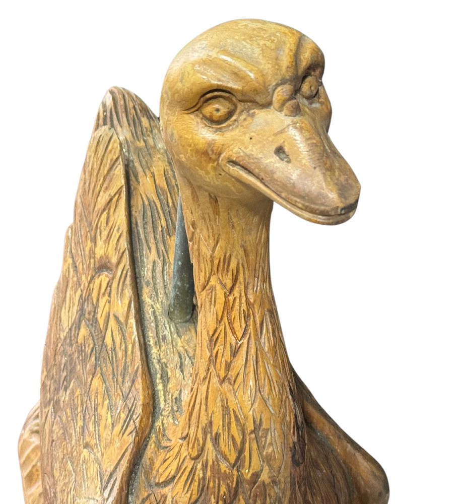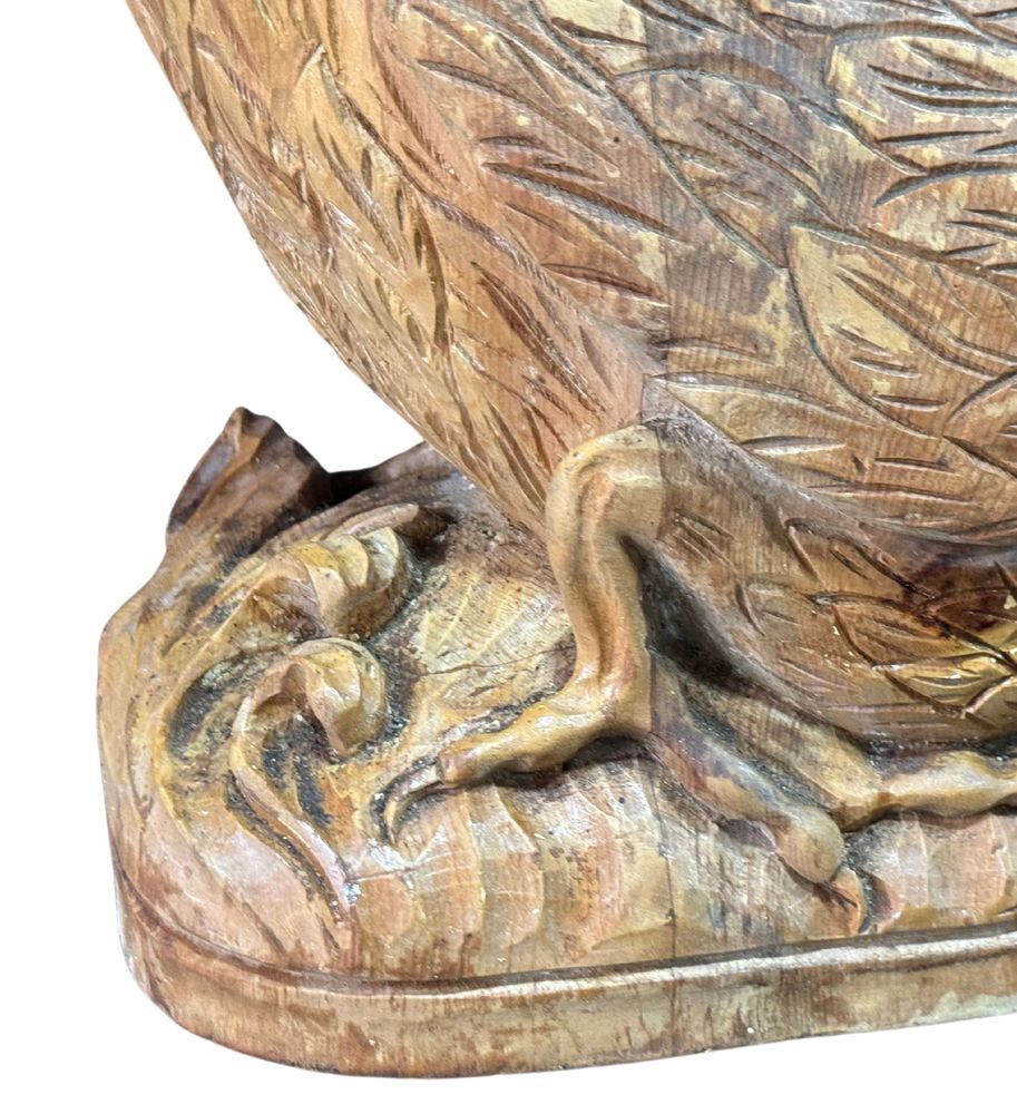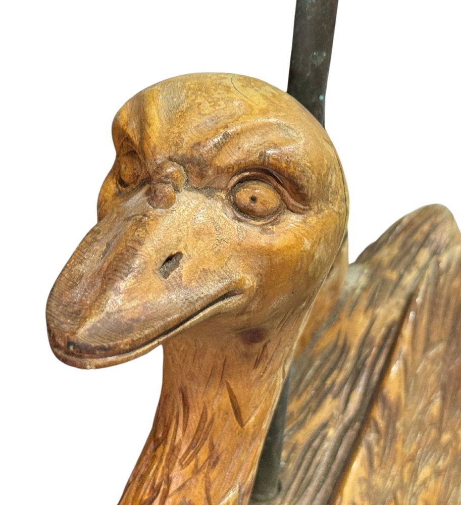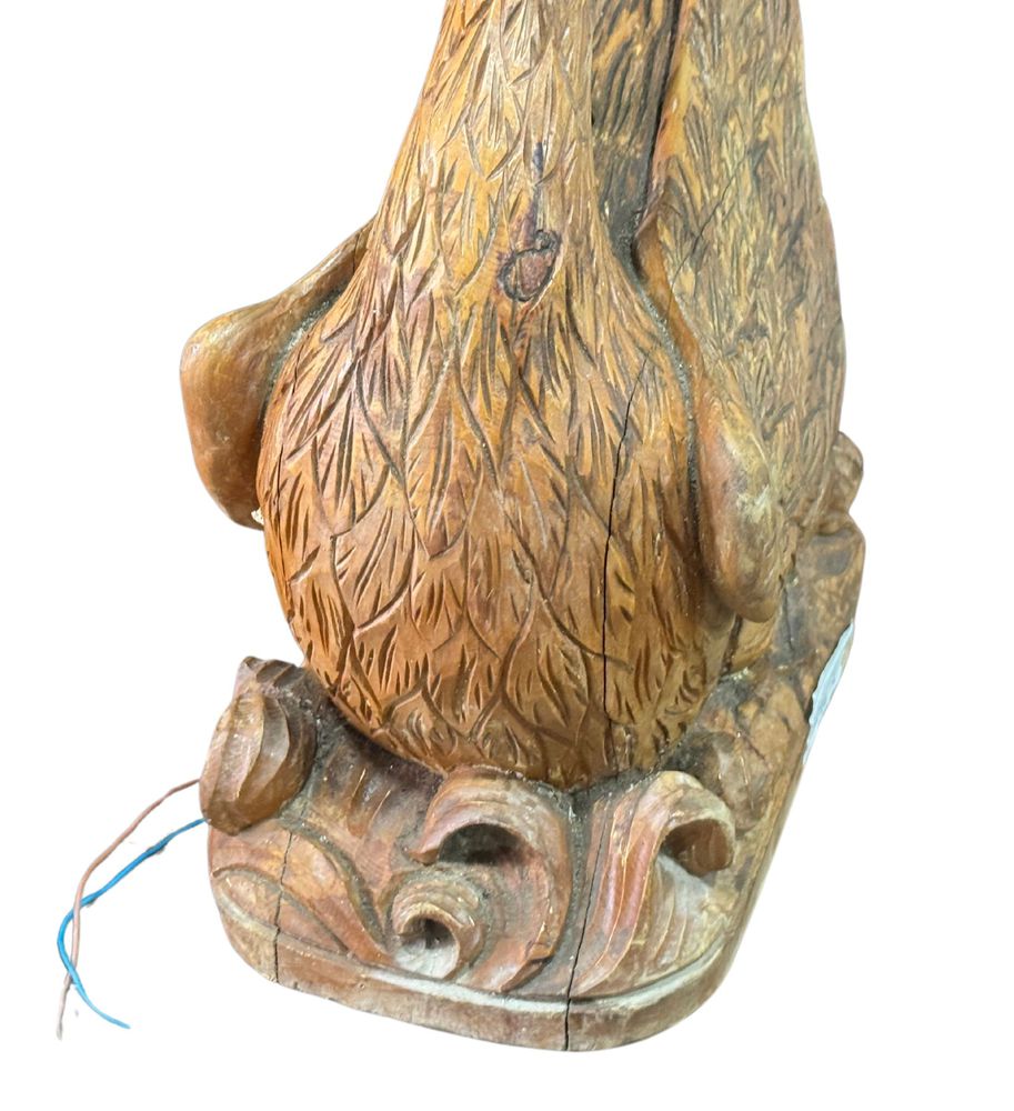 Lume con base in legno intagliata a mano, periodo XX secolo, base raffigurante Cigno. Dimensioni: h43x20x30 cm. Lume in buone condizioni con lievi segni di vissuto come da foto allegate.
