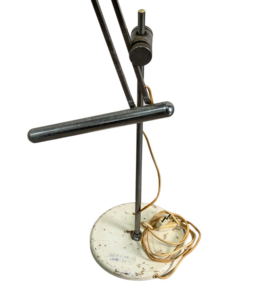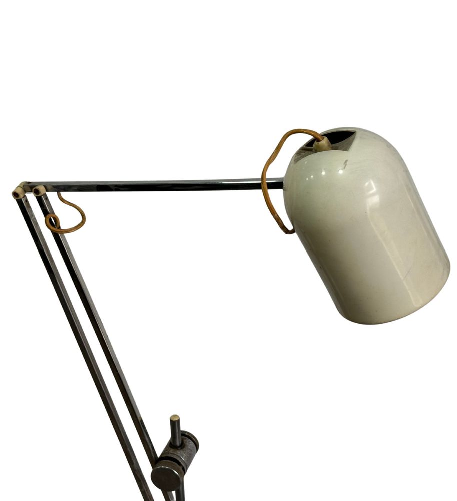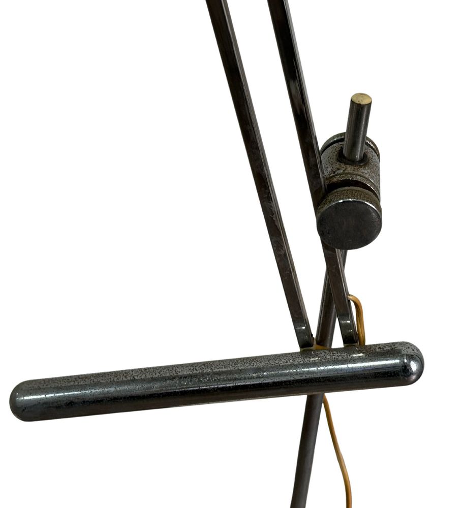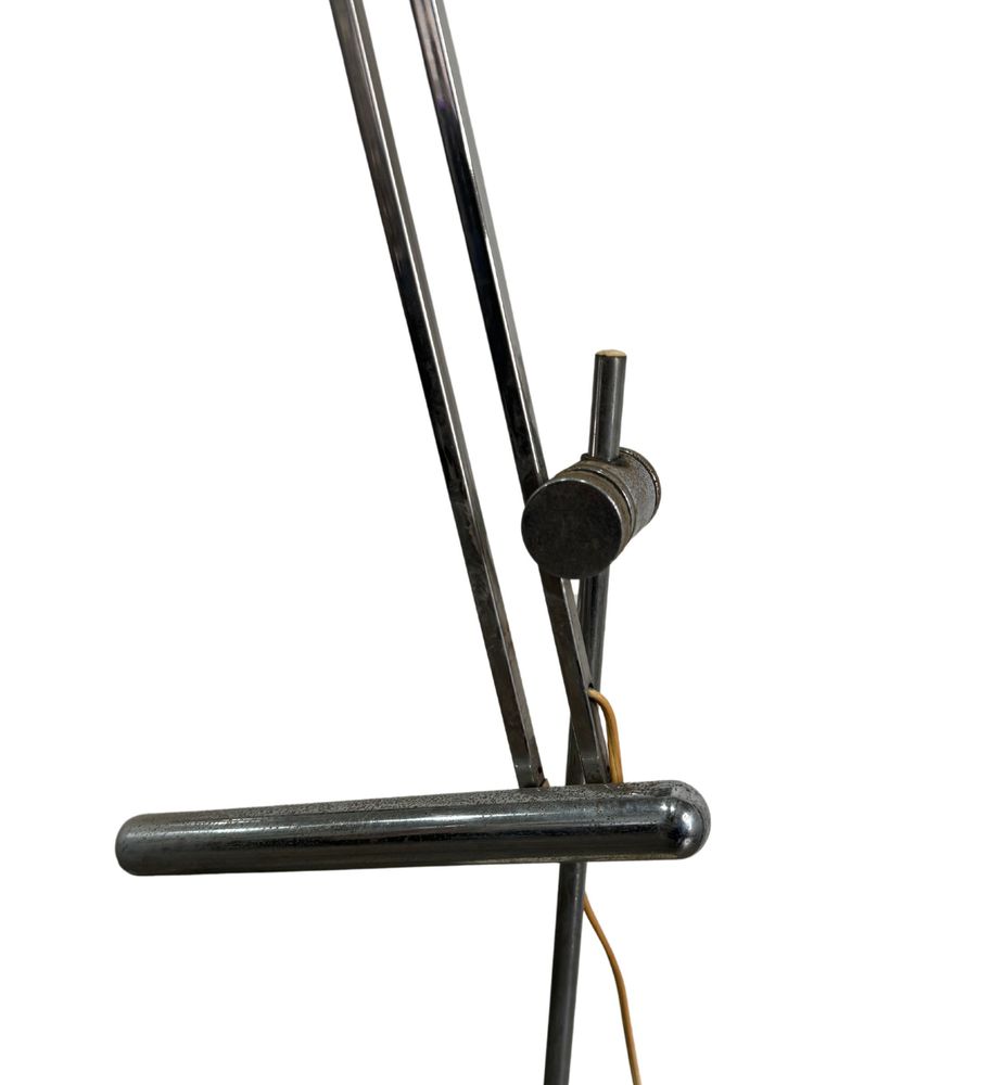 Lampada da tavolo con contrappeso in metallo cromato, per Reggiani Italia, periodo anni 70. Dimensioni: h130x23 cm. Da pulire.