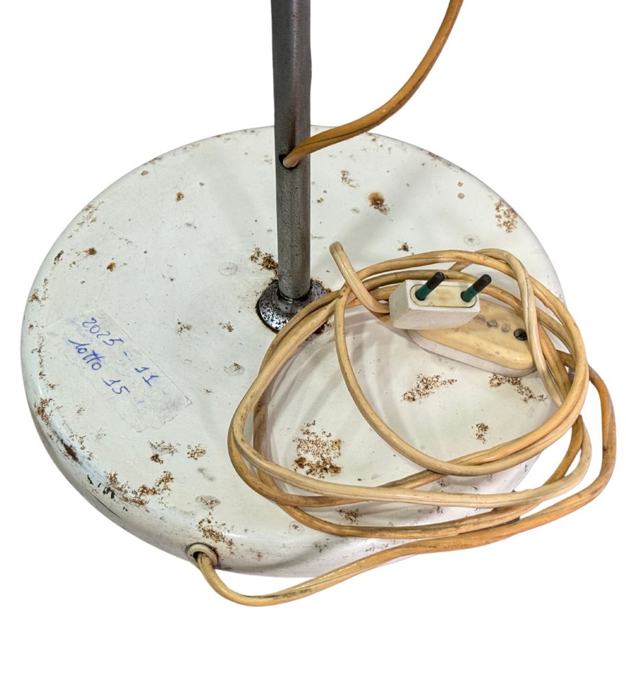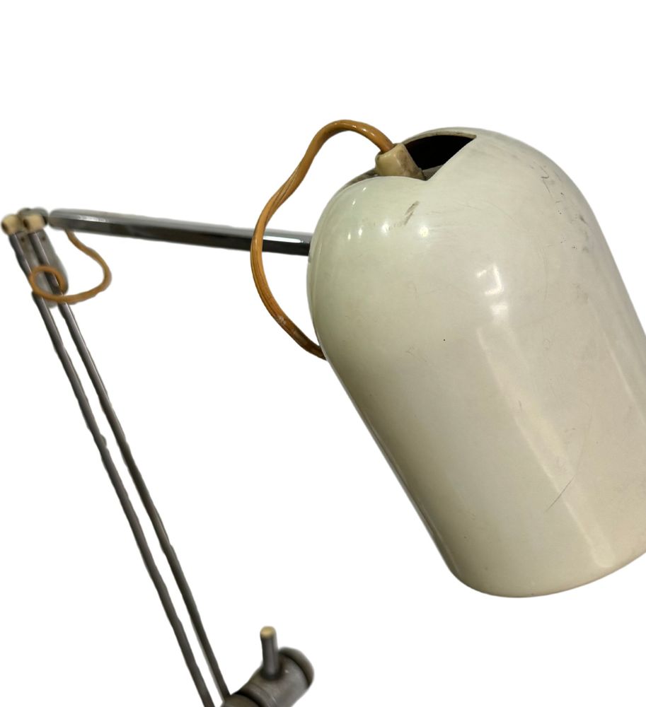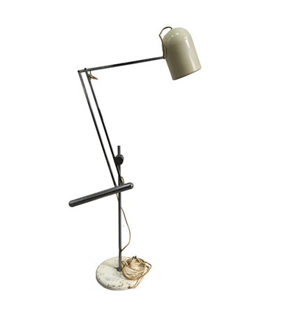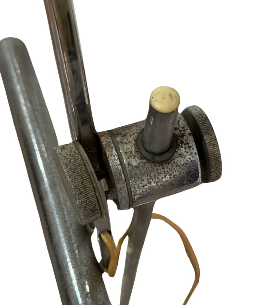 Lampada da tavolo con contrappeso in metallo cromato, per Reggiani Italia, periodo anni 70. Dimensioni: h130x23 cm. Da pulire.