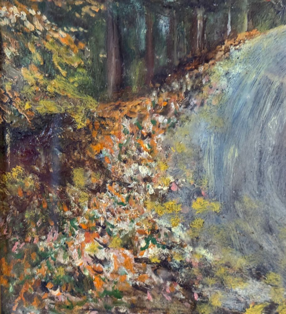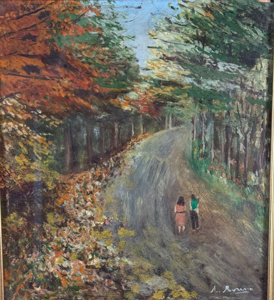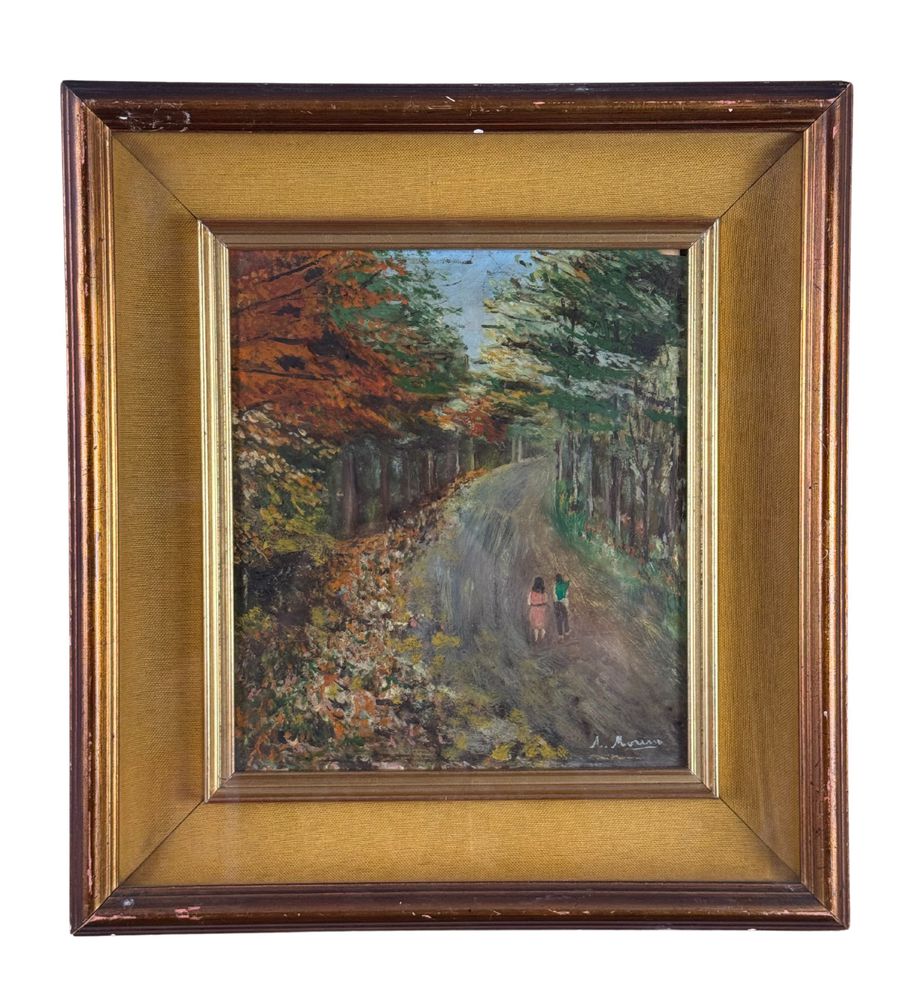 Dipinto olio su tavola, periodo XX secolo scuola Italiana, raffigurante Stradina con personaggi. Dimensioni compreso cornice: 36,5x39,5 cm. Dimensioni interno cornice: 22,5x25,5 cm. Reca firma in basso a destra artista non identificato. Opera in buone condizioni.