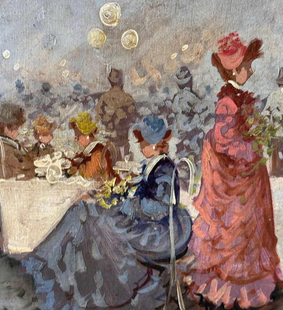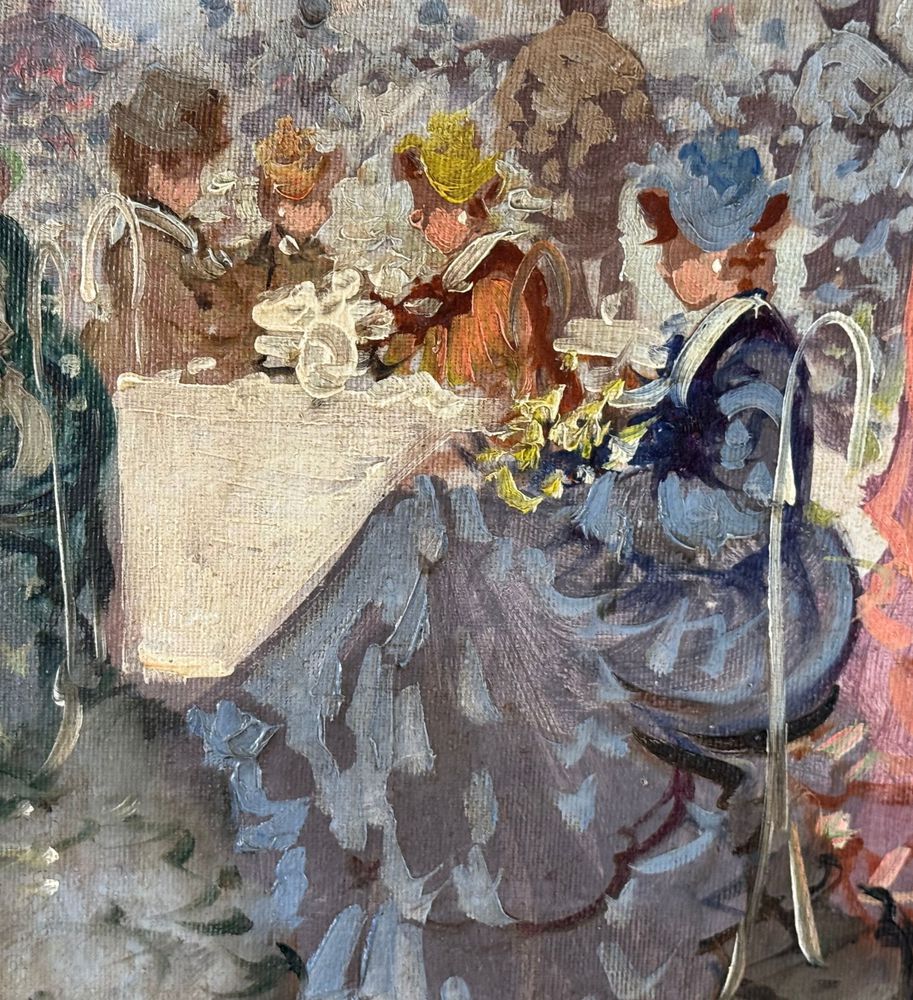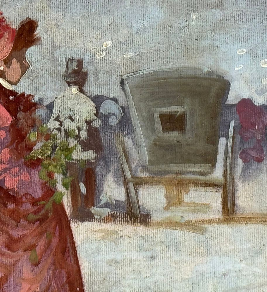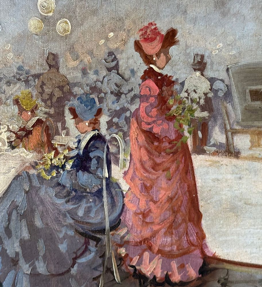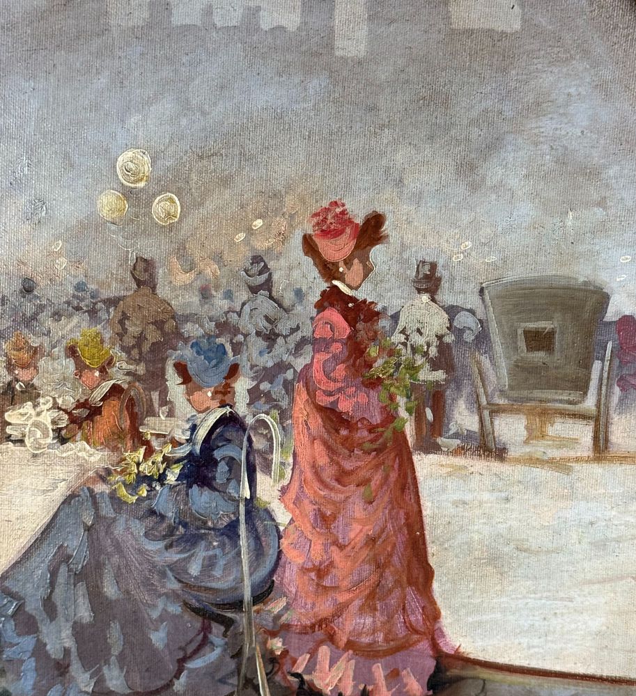 Dipinto olio su tela, periodo XX secolo scuola Italiana, raffigurante Personaggi. Dimensioni compreso cornice: 63x73 cm. Dimensioni interno cornice: 50x60 cm. Reca firma in basso a destra Michele Galante. Opera in buone condizioni.