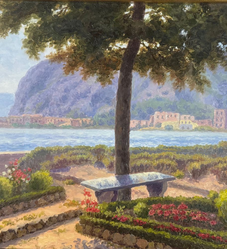 Dipinto olio su tavola, periodo XX secolo scuola Italiana, raffigurante Paesaggio marino. Dimensioni compreso cornice: 78x68 cm. Dimensioni interno cornice: 40x50 cm. Reca firma in basso a destra A. De Angelis. Opera in buone condizioni. Cornice difetti e mancanze.