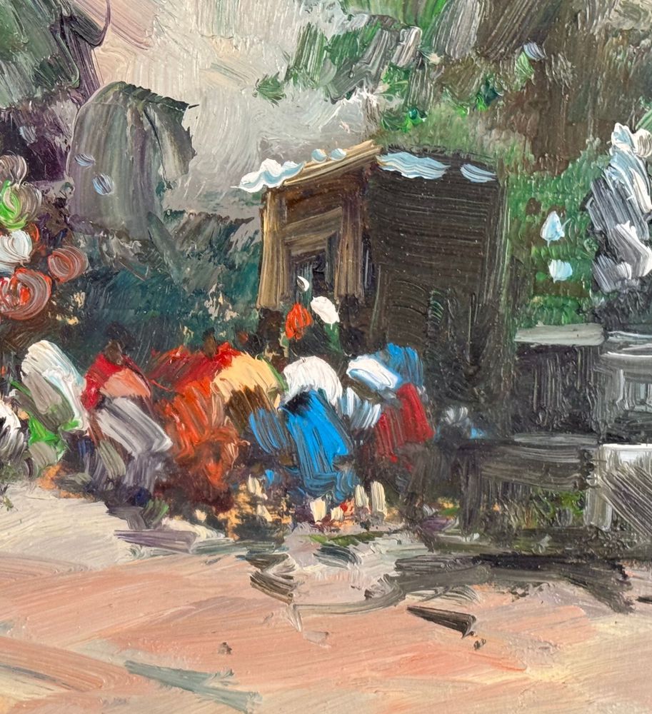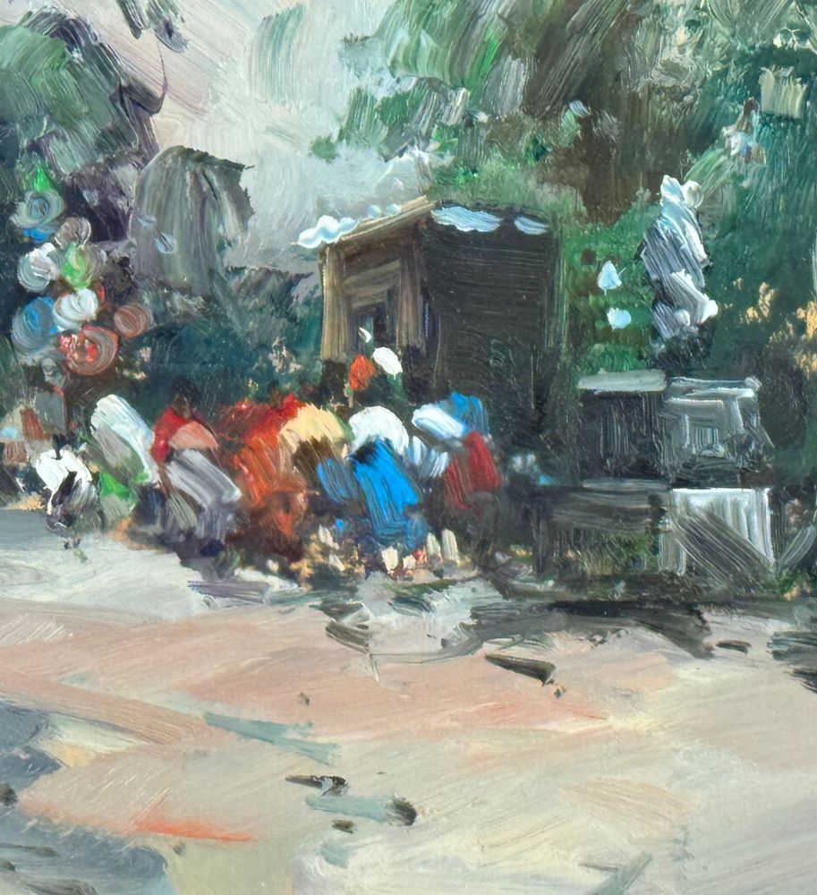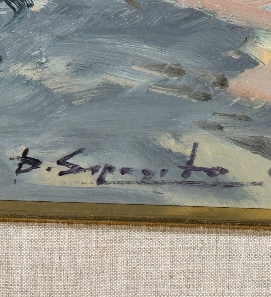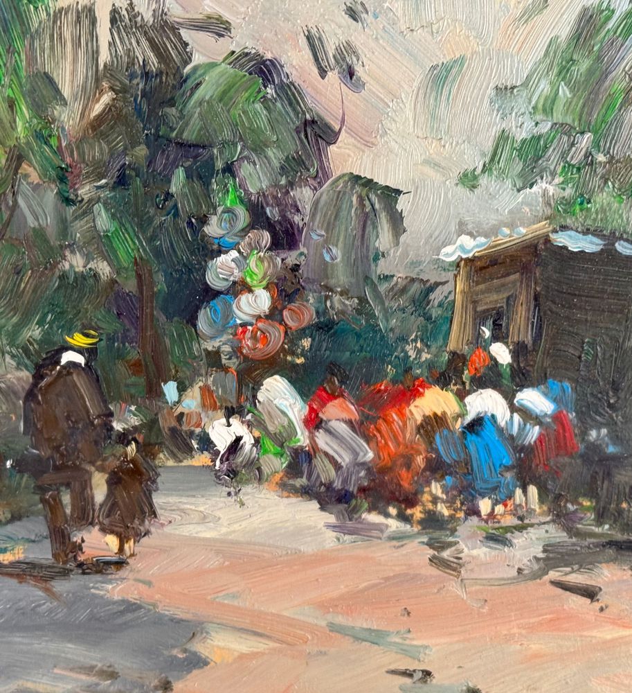 Dipinto olio su tavola, periodo XX secolo scuola Italiana, raffigurante Paesaggio con personaggi. Dimensioni compreso cornice: 54x43 cm. Dimensioni interno cornice: 25x35 cm. Reca firma in basso a sinistra artista non identificato. Opera in buone condizioni.