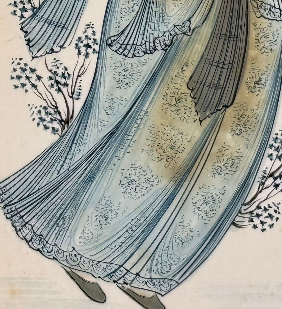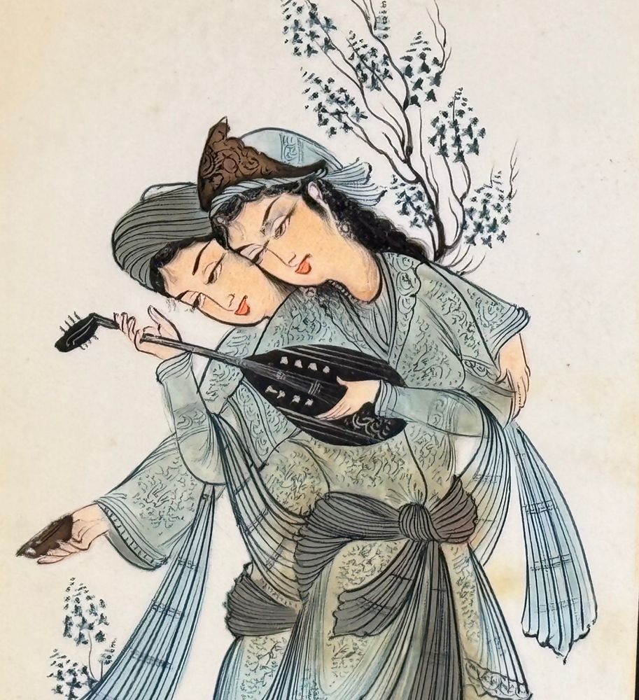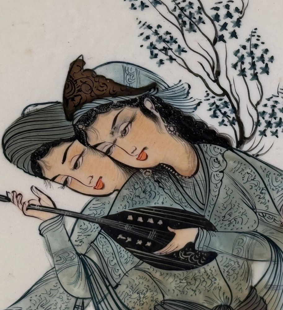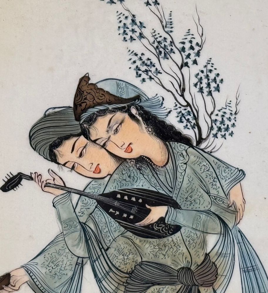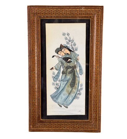 Dipinto su pannello, periodo XX secolo scuola orientale, raffigurante Due donne. Dimensioni compreso cornice: 27x46 cm. Dimensioni interno cornice: 15x34 cm. Reca firma in basso a destra artista non identificato. Opera in buone condizioni con lievi segni di vissuto come da foto allegate.