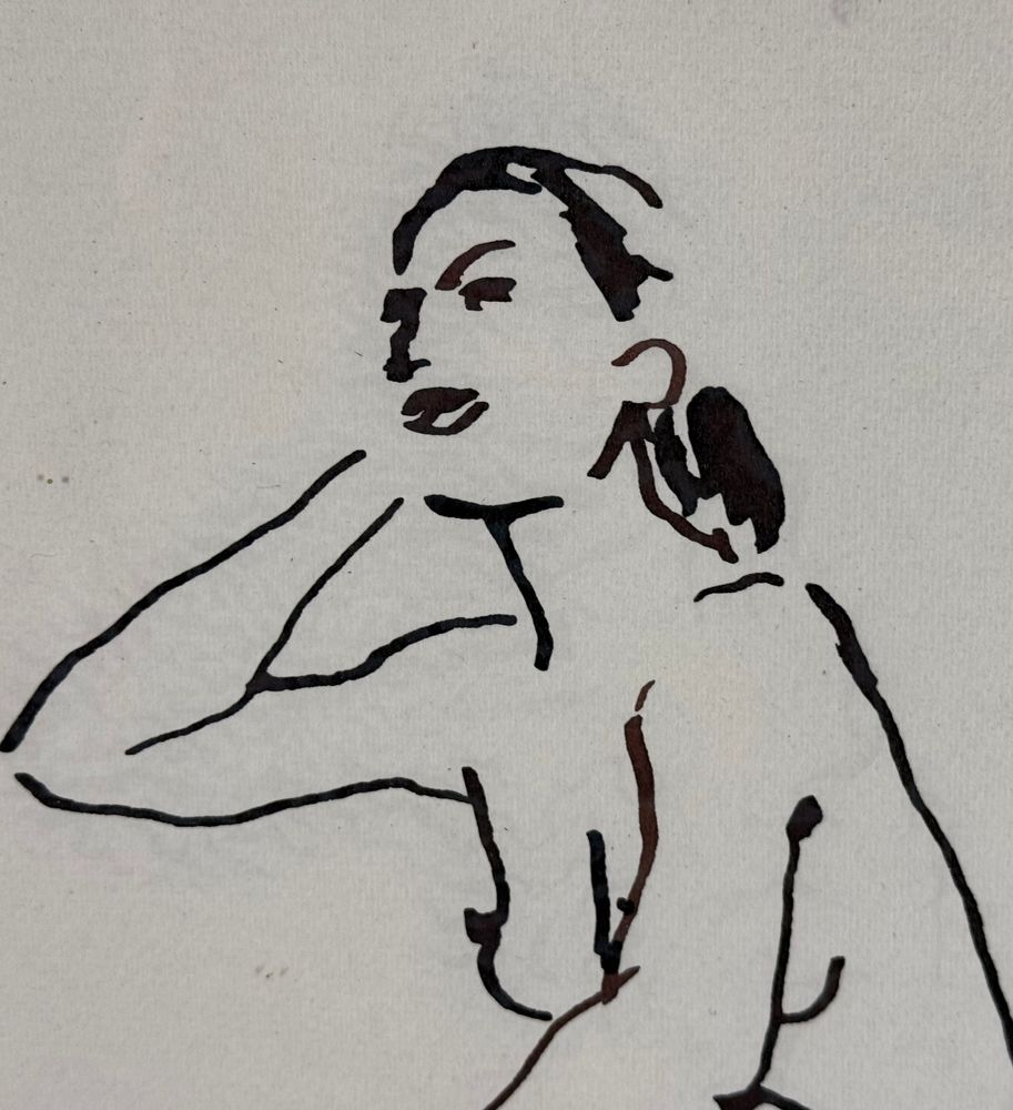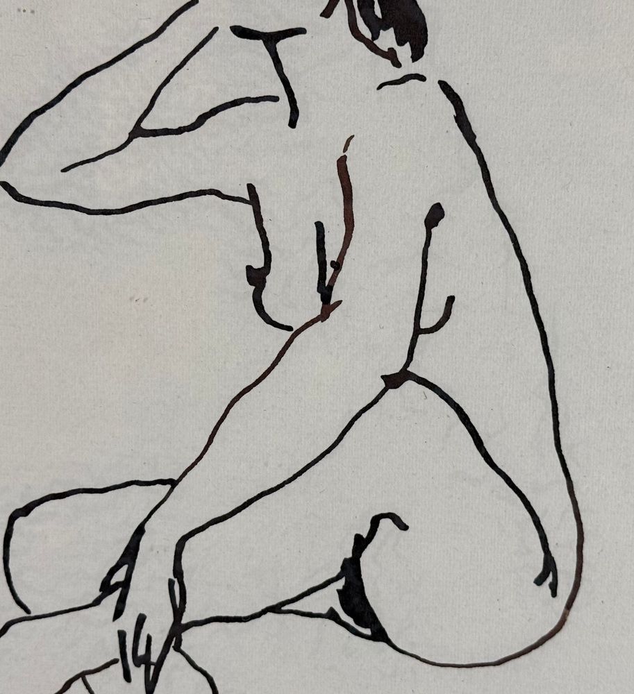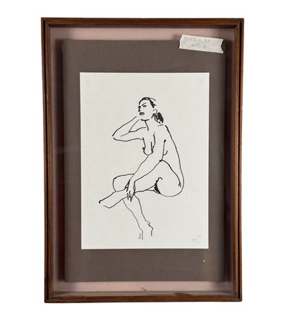 Inchiostro su carta, periodo XX secolo scuola Italiana, raffigurante Nudo di donna. Dimensioni compreso cornice: 36x51 cm. Dimensioni interno cornice: 24x33 cm. Traccia di firma in basso a destra artista non identificato. Opera in buone condizioni.