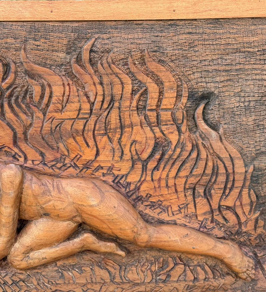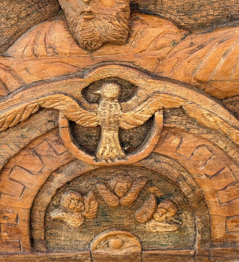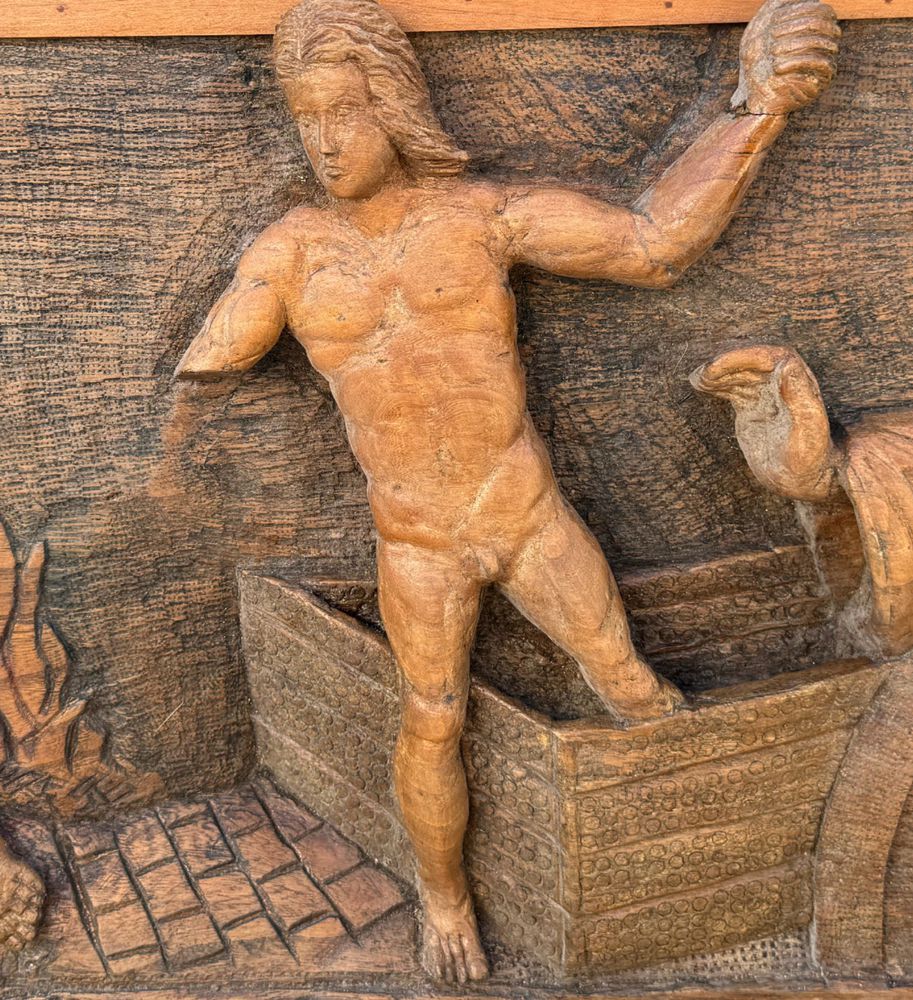 Pannello in legno scolpito a mano, periodo XIX/XX secolo raffigurante vari...