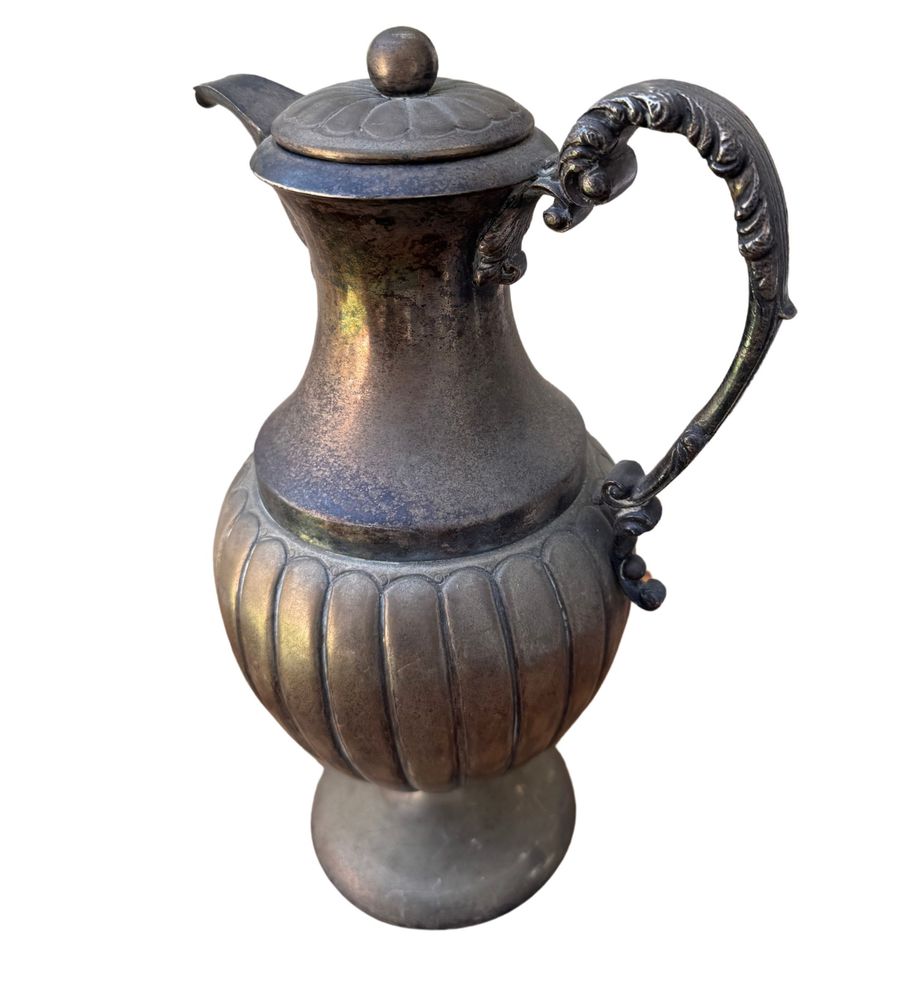 Lattiera in metallo argentato, periodo XIX/XX secolo. Dimensioni: h30 cm d19...