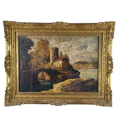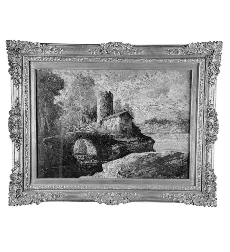 Dipinto olio su tela, periodo XX secolo, scuola Italiana, raffigurante Paesaggio. Dimensioni compreso cornice: 72x91 cm. Dimensioni interno cornice: 50x70 cm. Reca firma in basso a destra Gino Grignani. Opera in buone condizioni.