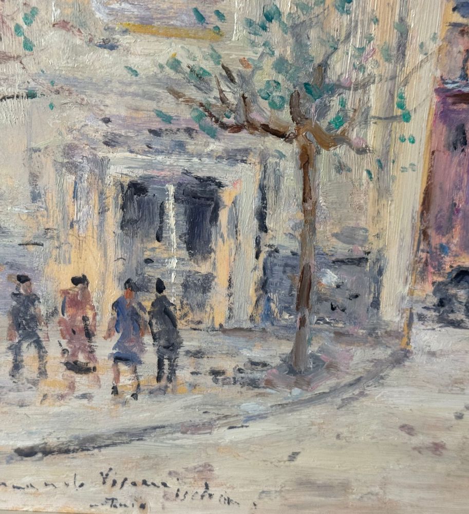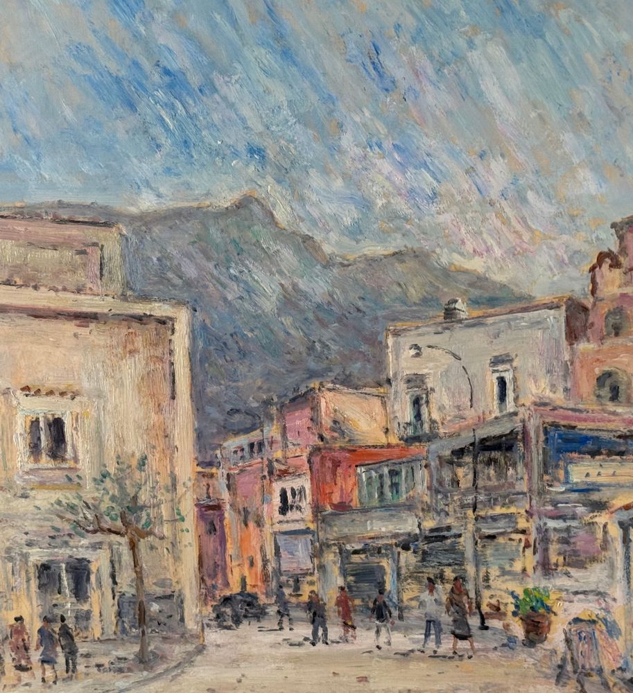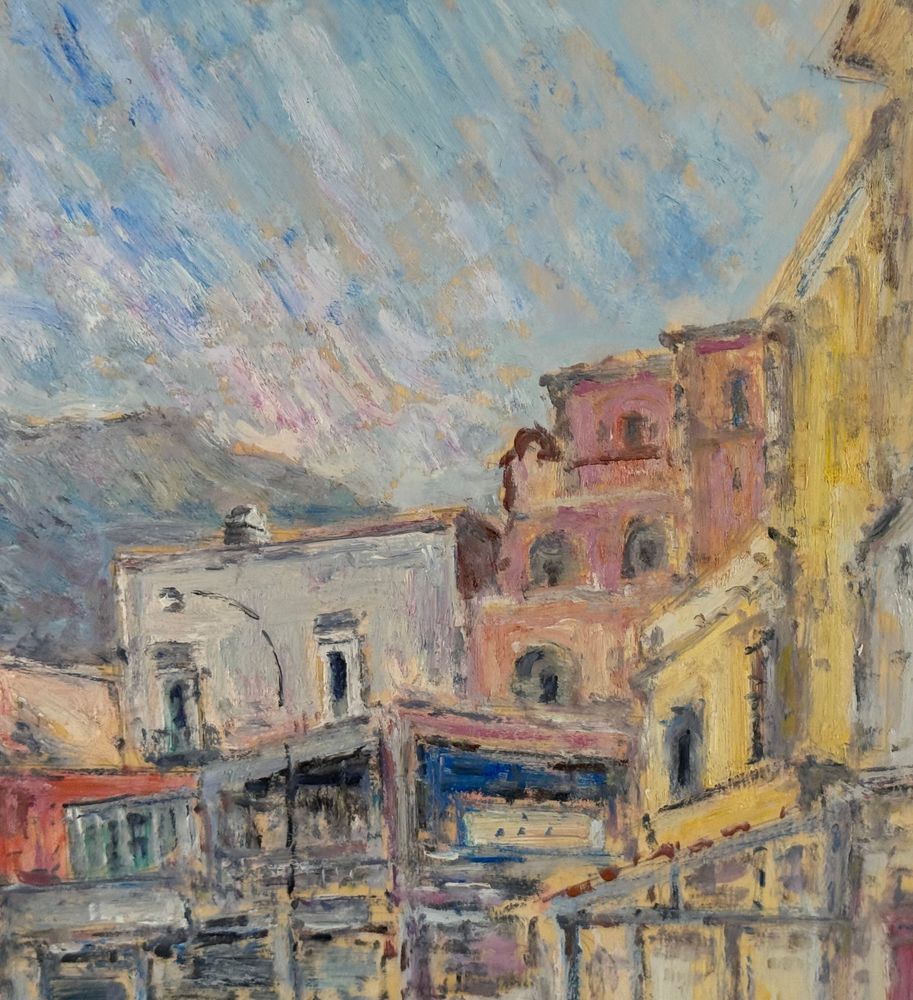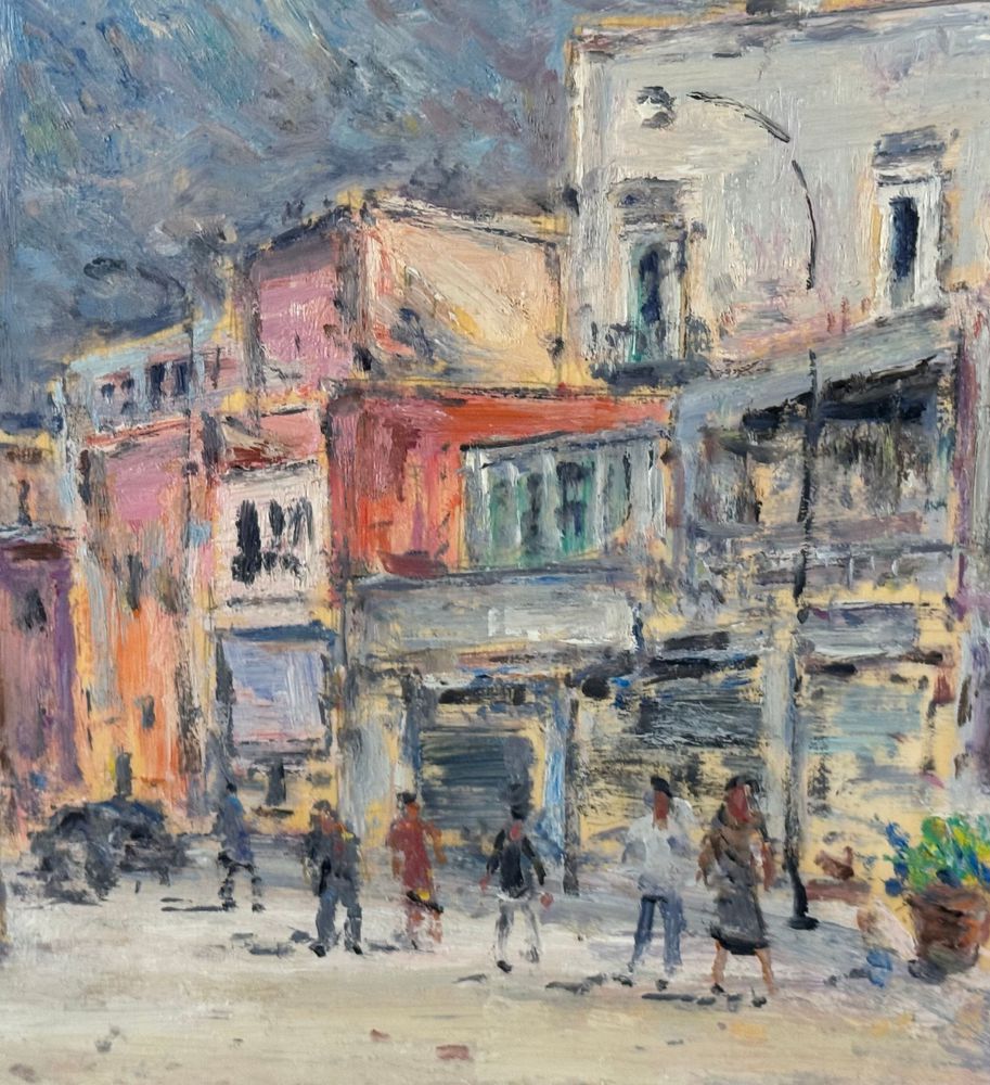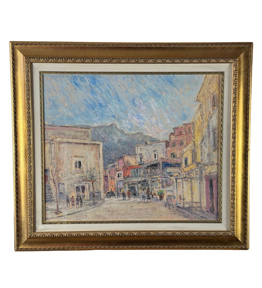 Dipinto olio su tavola, periodo XX secolo, scuola Italiana, raffigurante Forio (Ischia). Dimensioni compreso cornice: 79,5x69,6 cm. Dimensioni interno cornice: 50x60 cm. Reca firma in basso a sinistra Ferdinando Visone. Opera in buone condizioni.