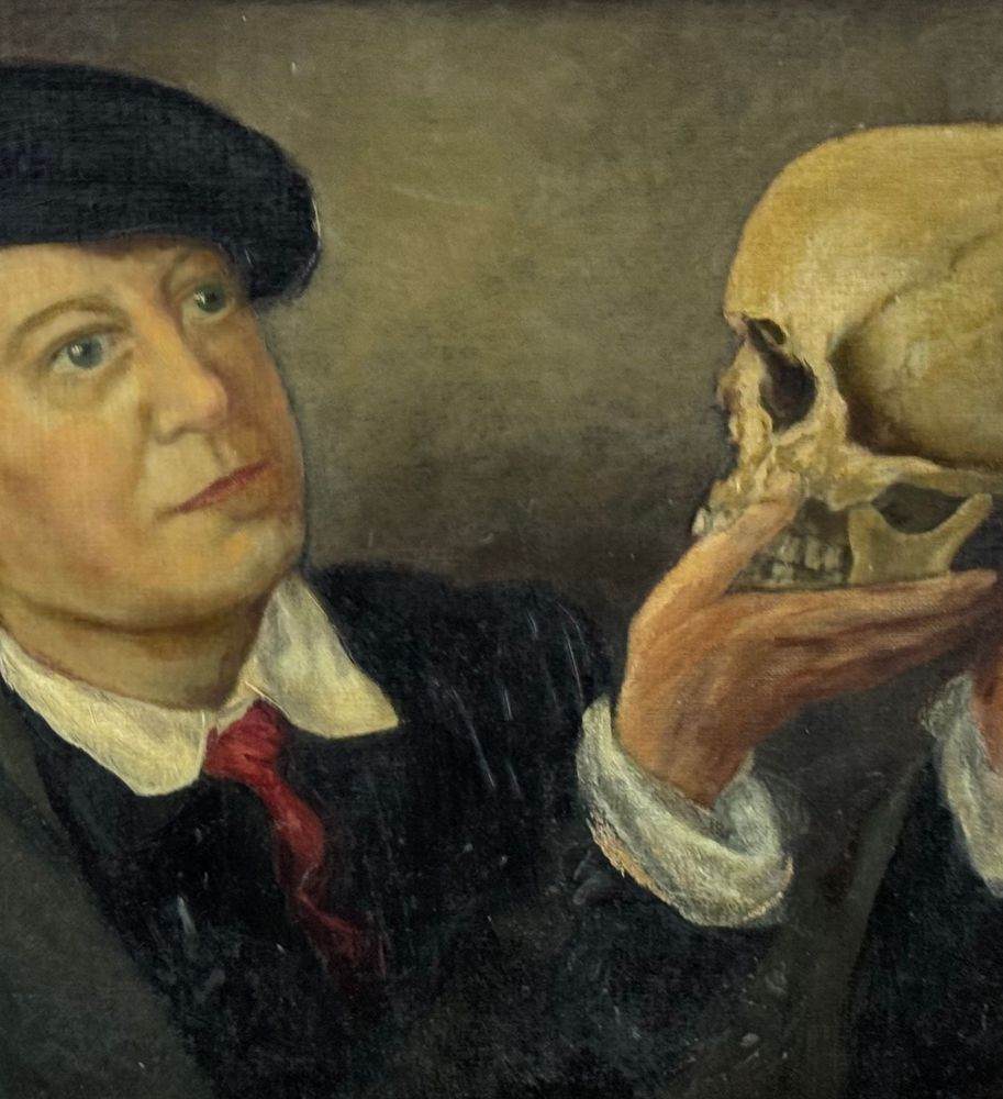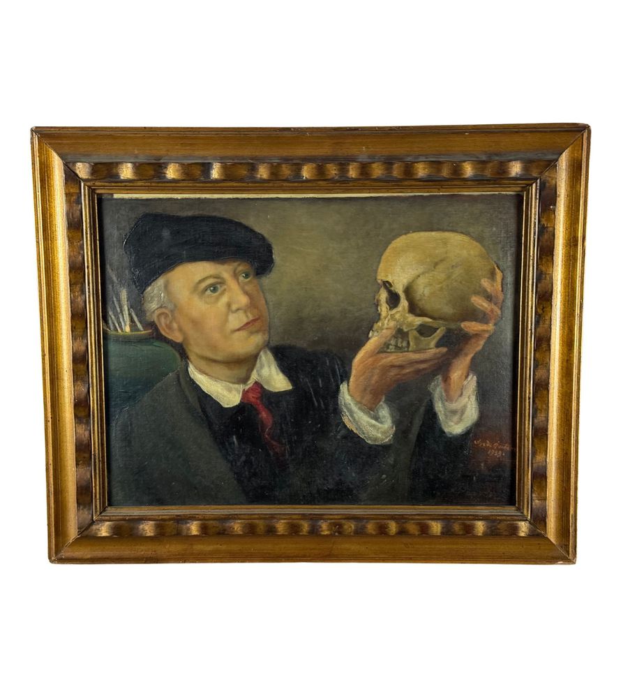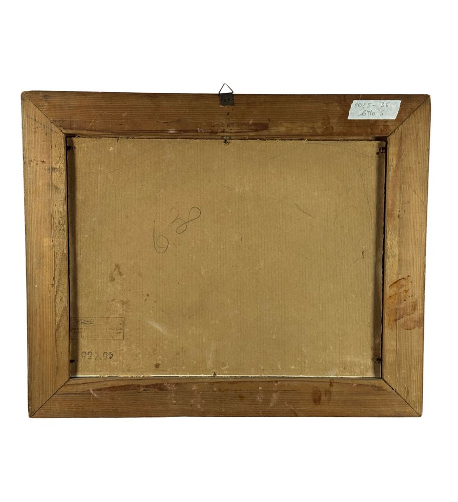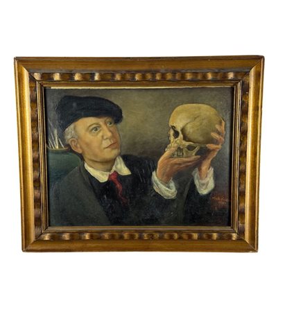 Dipinto olio su tela applicata su cartoncino, periodo prima metà del XX secolo, scuola Italiana, raffigurante Il Pittore. Dimensioni compreso cornice: 55x44 cm. Dimensioni interno cornice: 45x55 cm. Reca firma in basso a destra artista non identificato. (1933). Opera in buone condizioni.