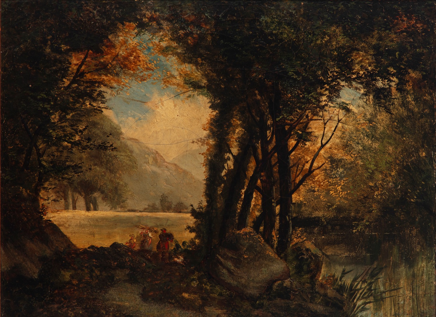 Scuola europea, secolo XIX - Paesaggio con viandanti