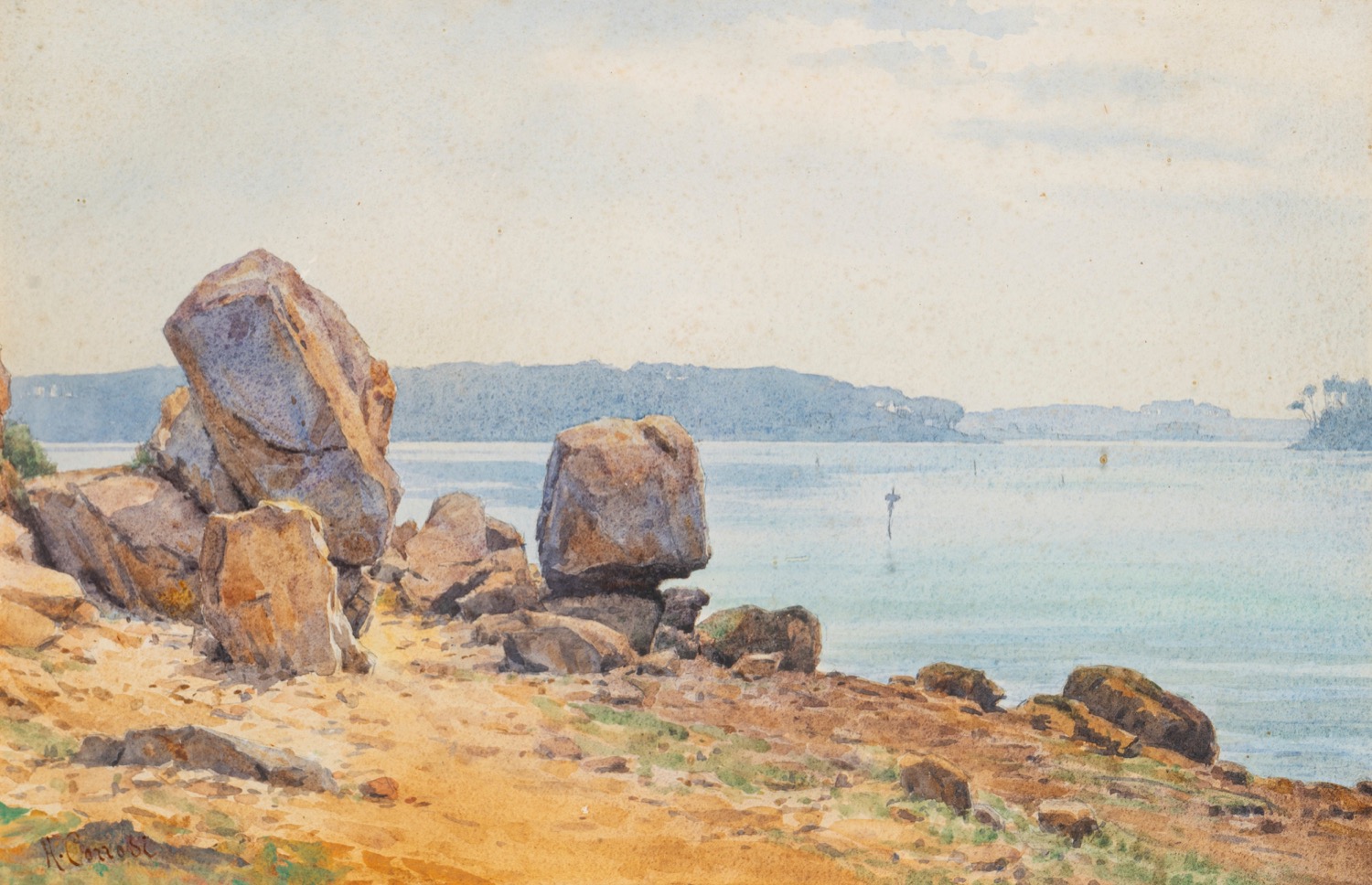Hermann David Salomon Corrodi (Frascati 1844 - Roma 1905) - Scogli in riva al mare