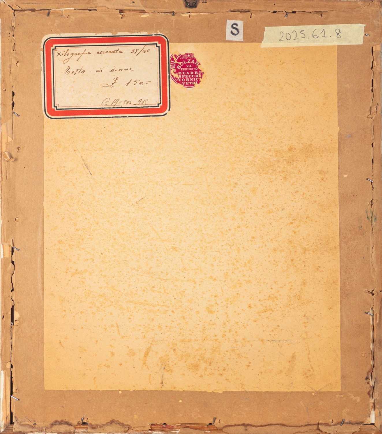 al retro, etichetta manoscritta con titolo, prezzo (L. 150), firma e data