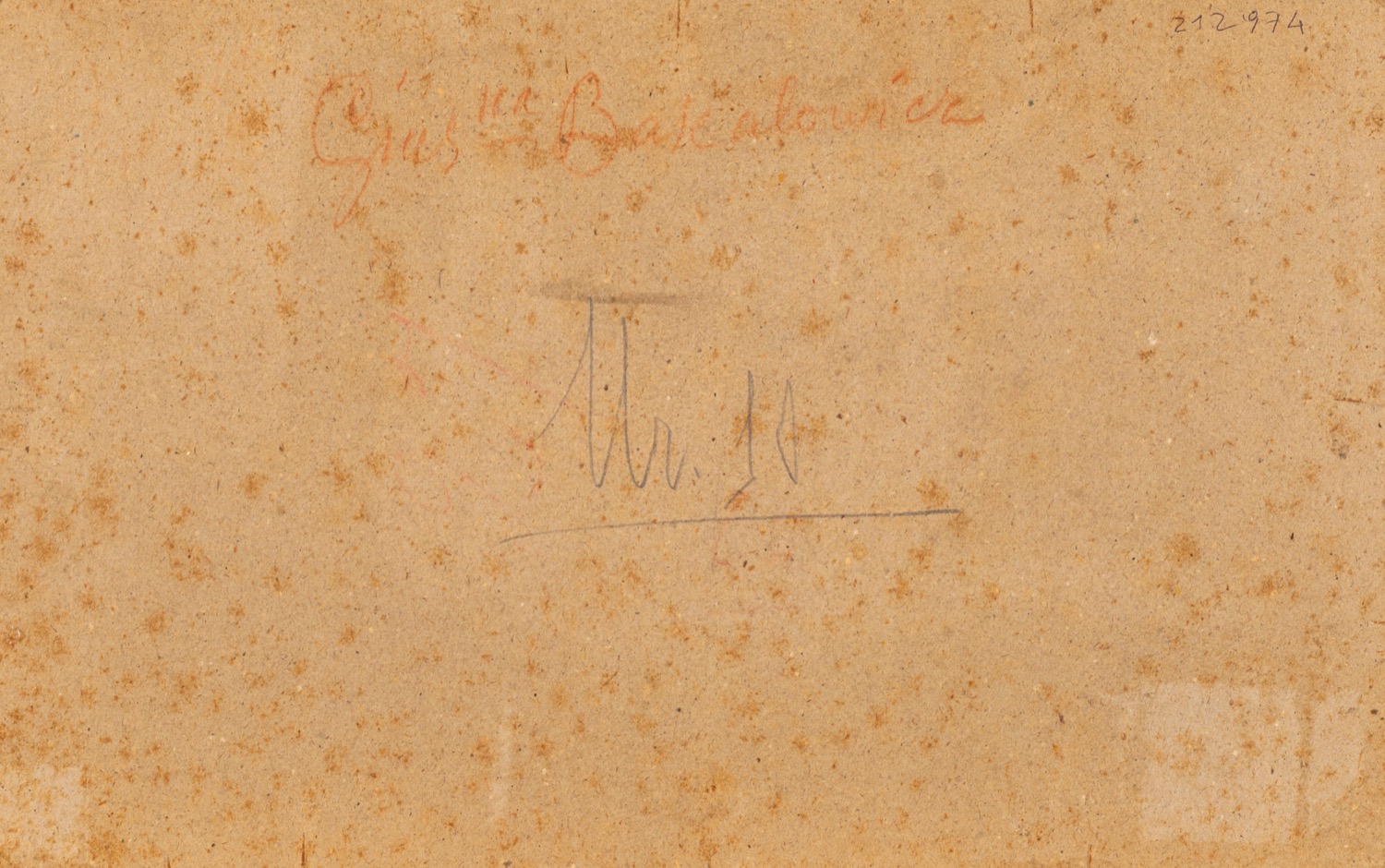 al retro, antica scritta con riferimento alla provenienza (Gius.na Bakalowicz) e numero di riferimento (10)
