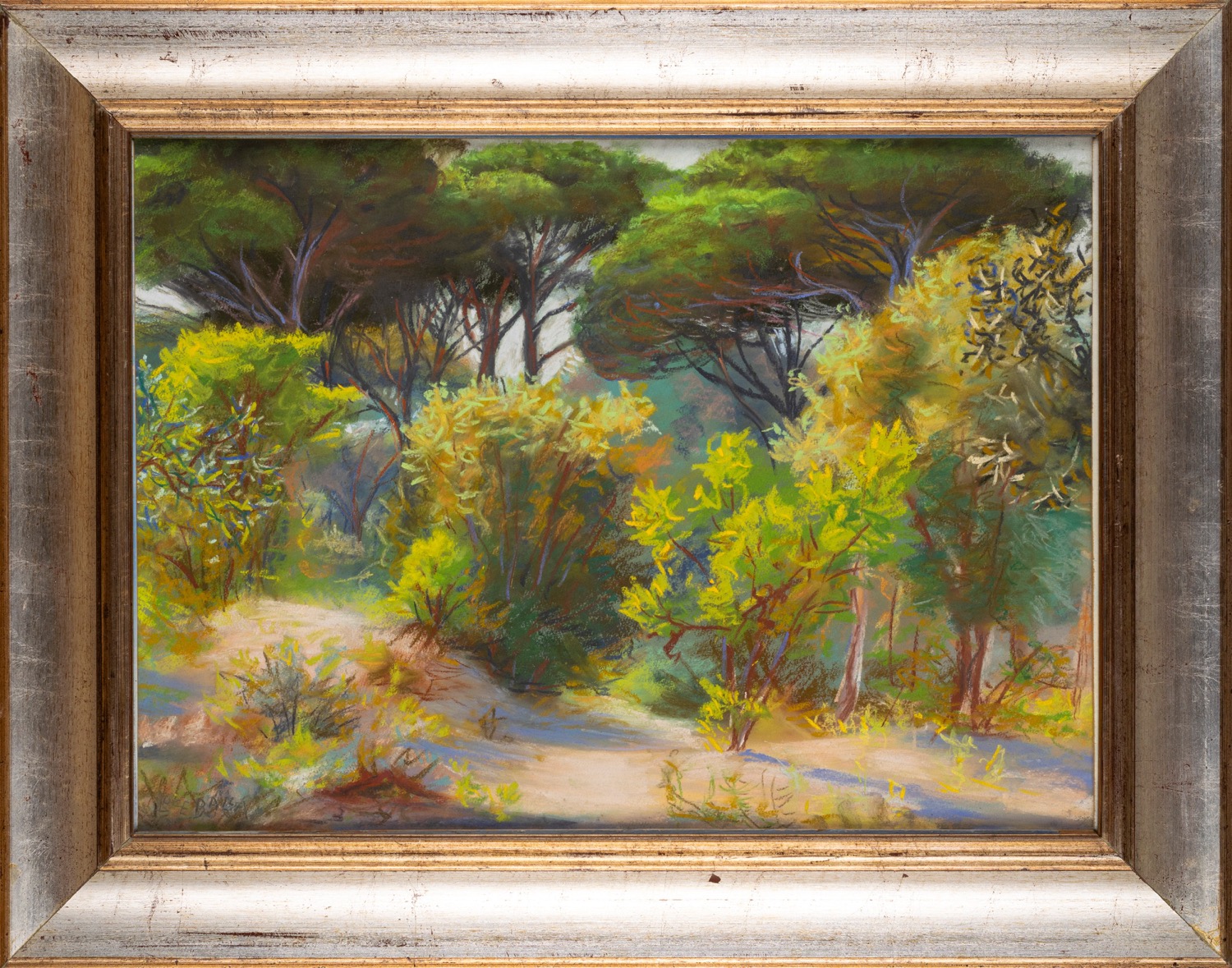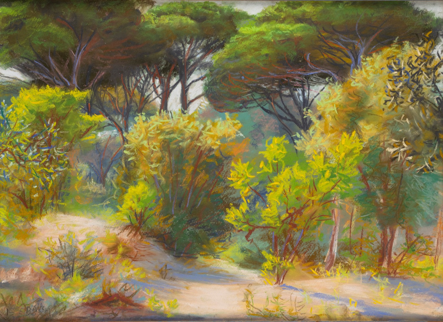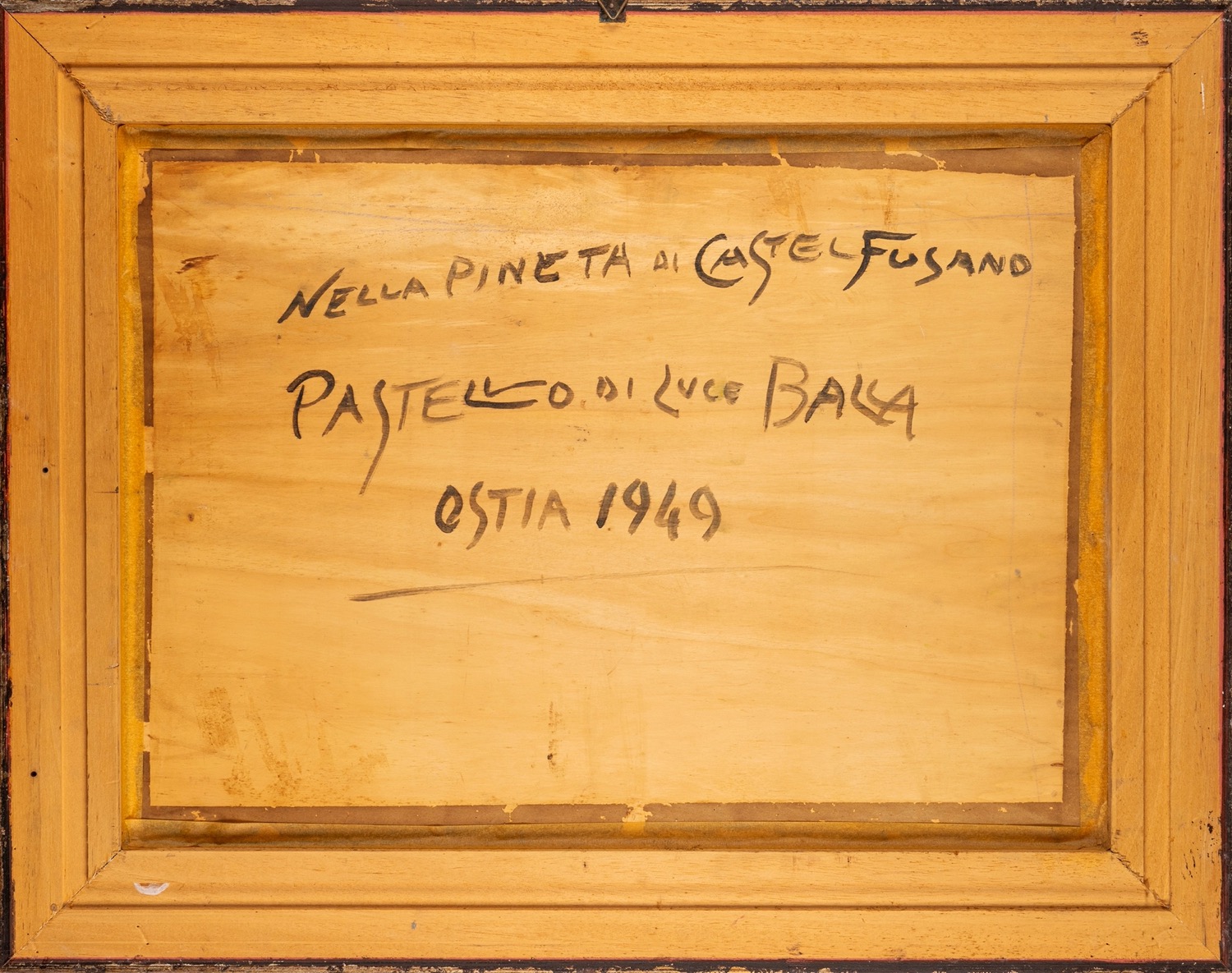 al retro, intitolato, firmato, locato e datato: NELLA PINETA DI CASTEL FUSANO / PASTELLO DI LUCE BALLA / OSTIA 1949