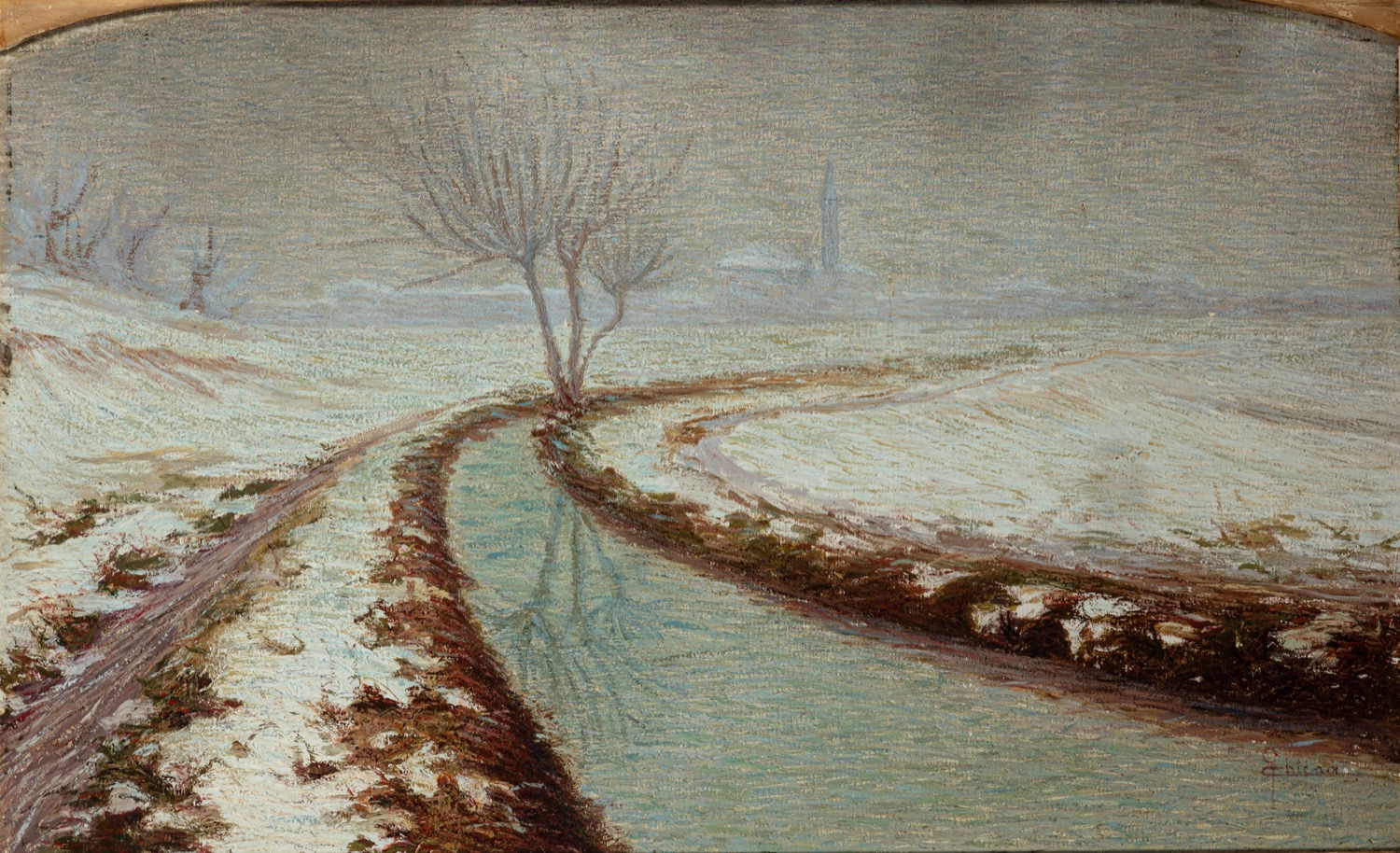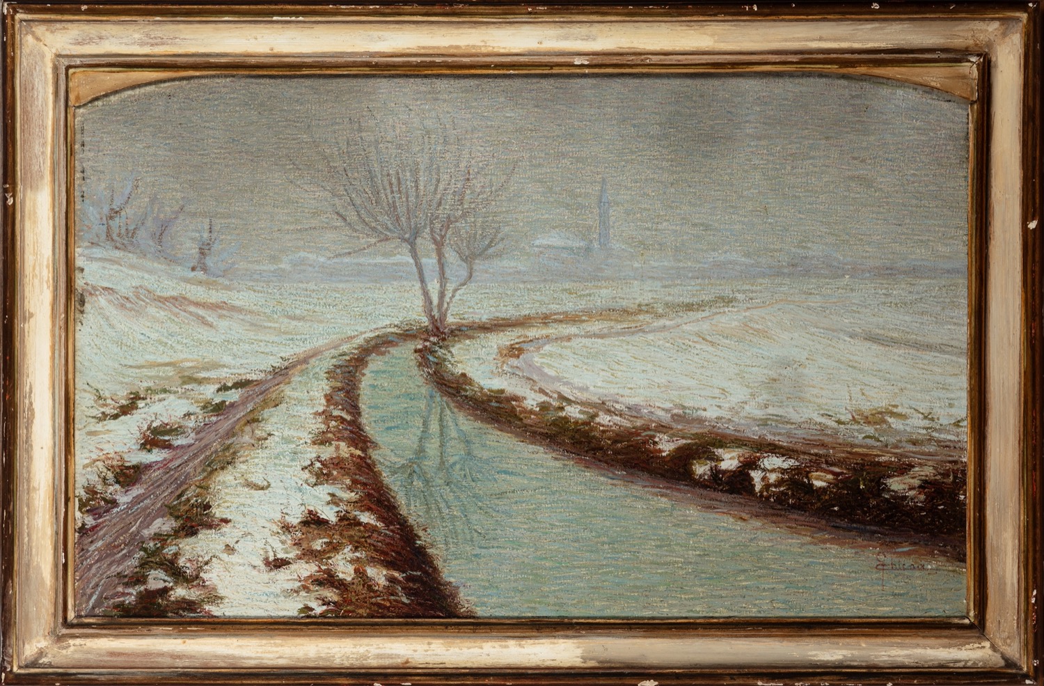 Gerolamo Chiesa (Novara 1869 - Morbegno 1953) - Paesaggio innevato con fiume