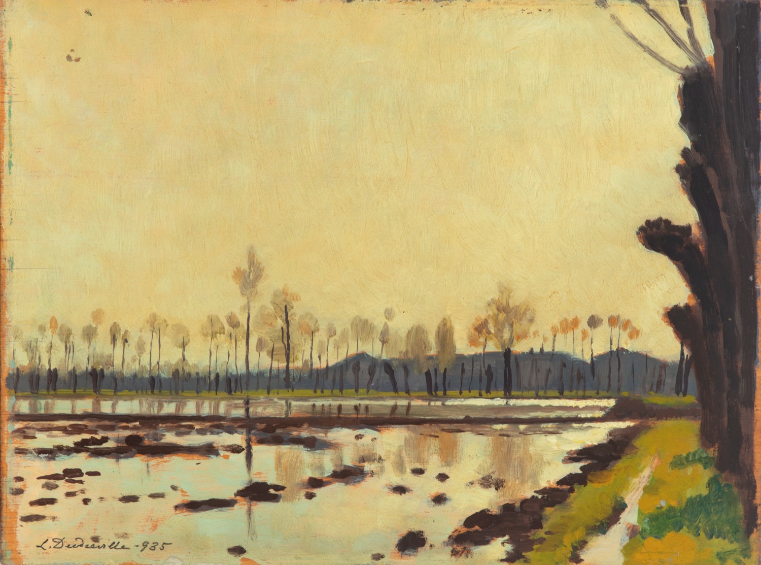 Leonardo Dudreville (Venezia 1885 - Ghiffa 1976) - Risaia sott'acqua, 1935