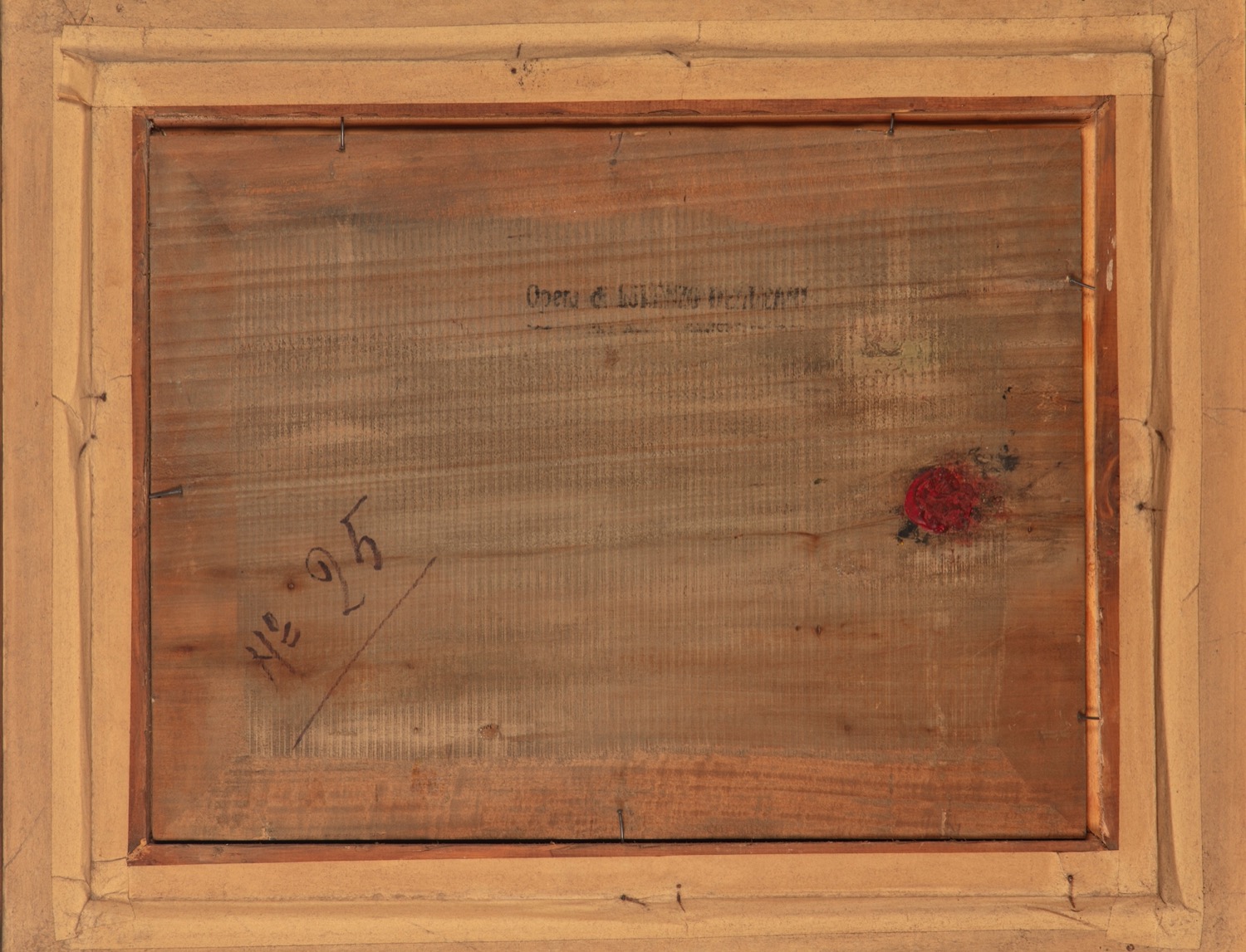 al retro, sulla tavola, timbro per autentica di Leonardo Bistolfi e timbro a ceralacca