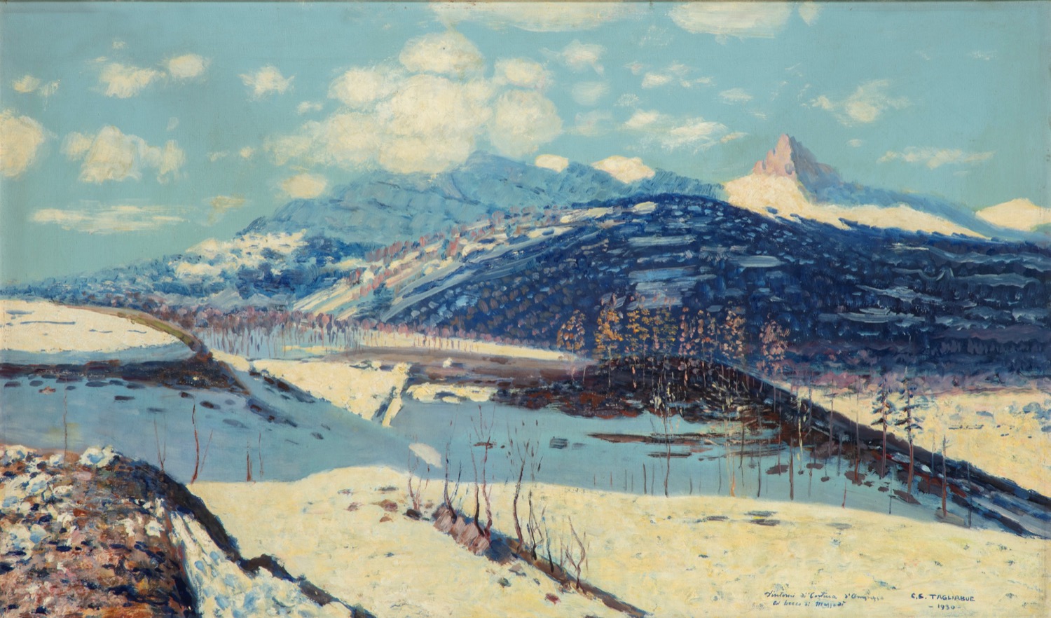 Carlo Costantino Tagliabue (Bresso 1880 - Milano 1960) - Dintorni di Cortina d'Ampezzo con il becco di Mezzodì, 1930
