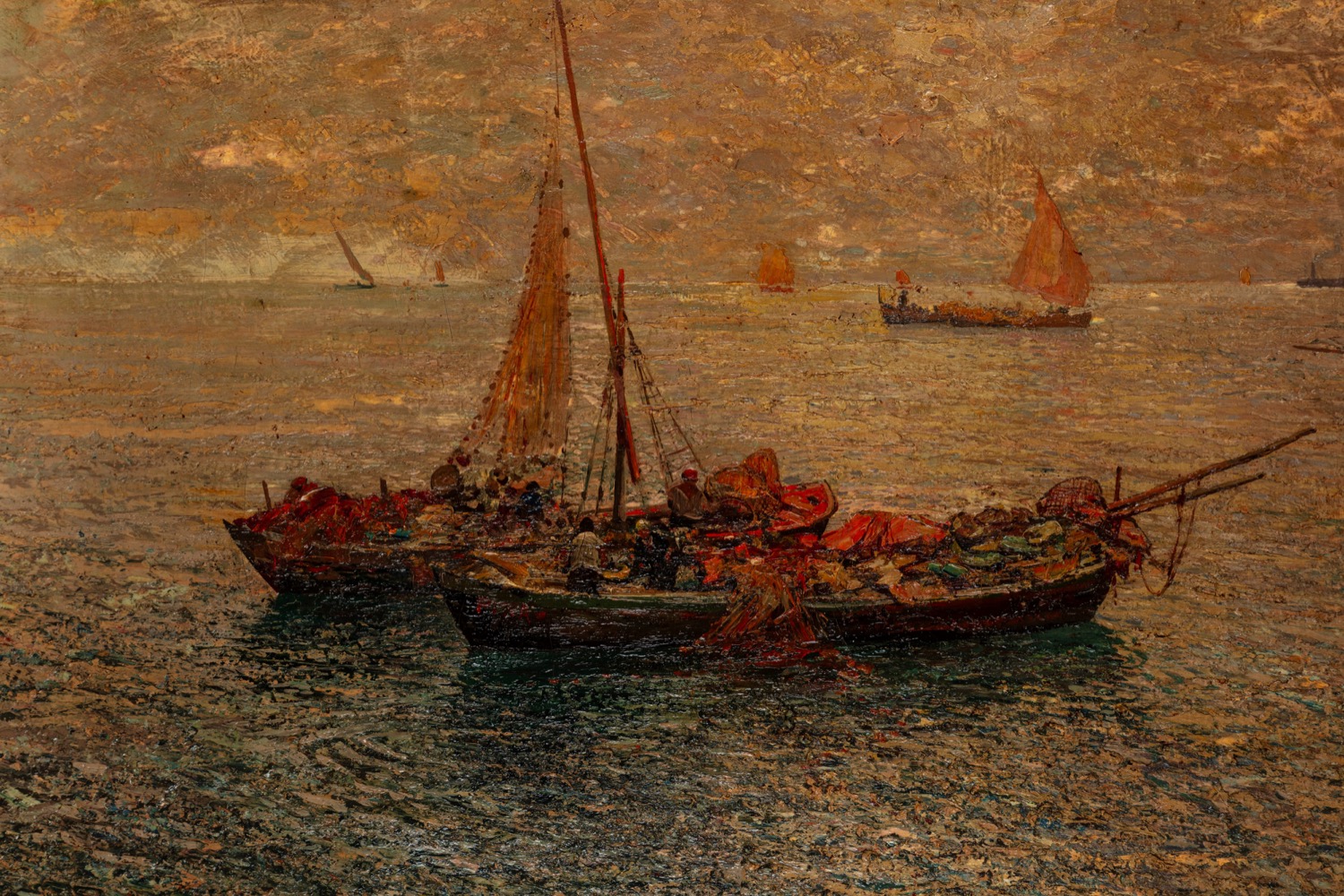 Fausto Pratella (Napoli 1888 - 1946) - Pescherecci al tramonto