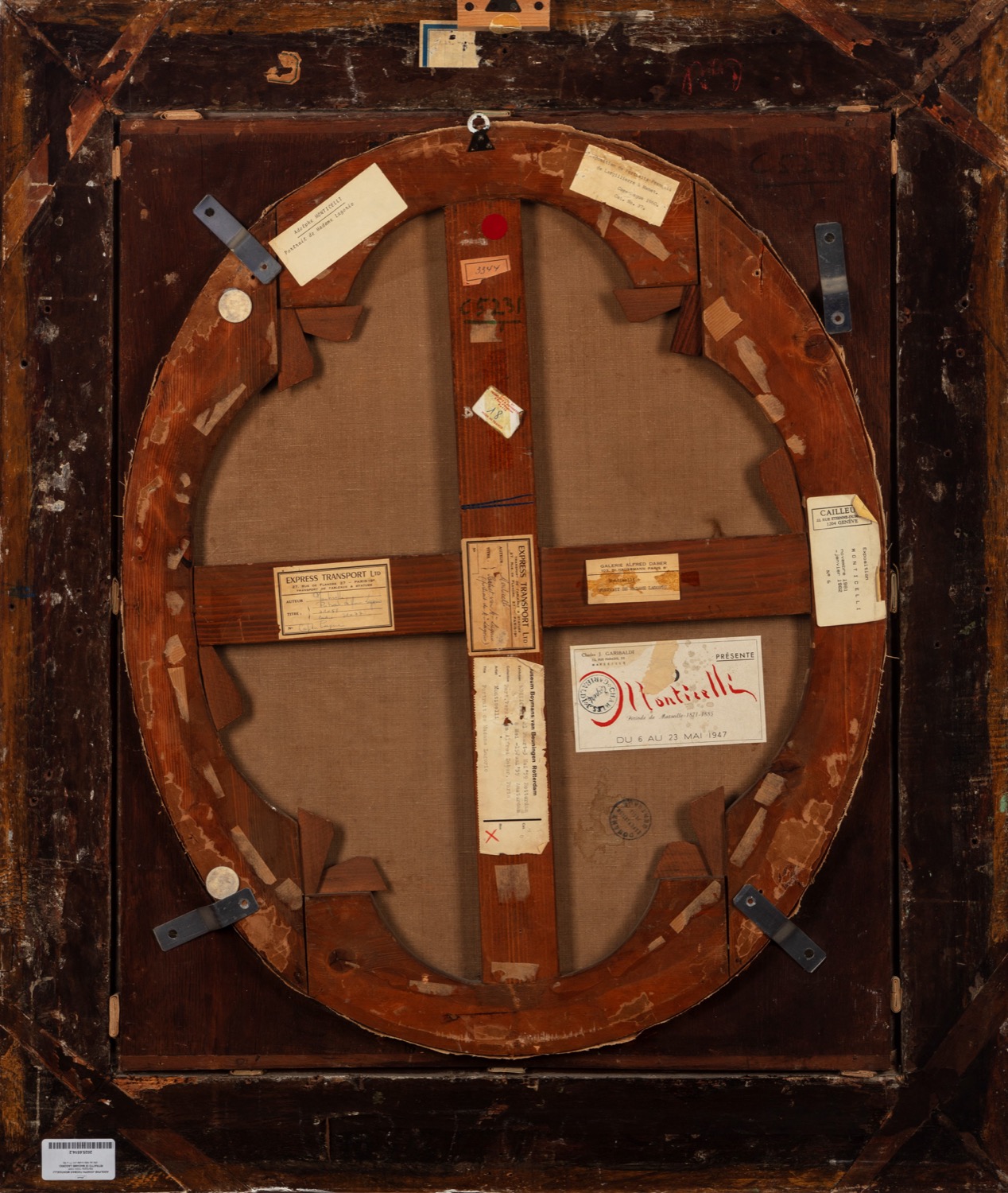 al retro, sulla tela e sul telaio, etichette relative ad esposizioni e provenienza