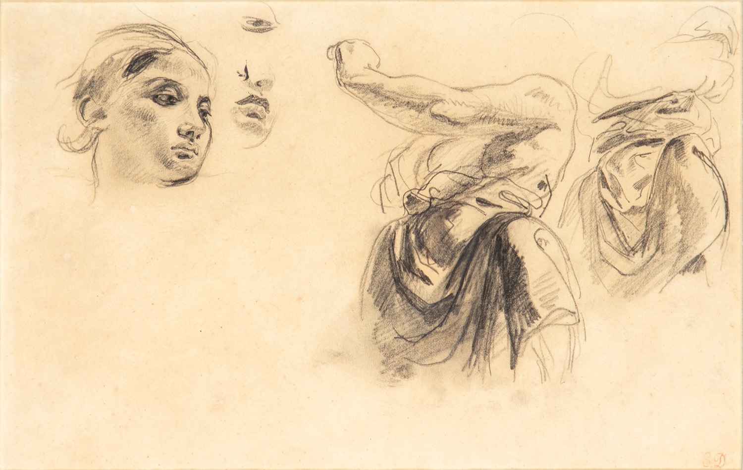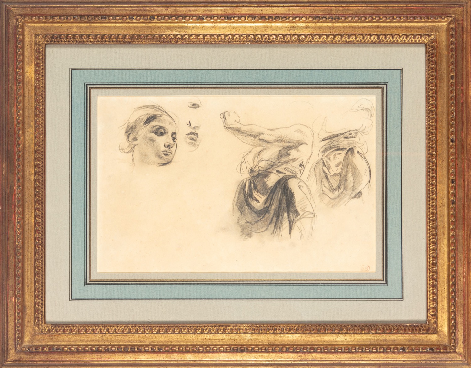Eugène Delacroix (Saint-Maurice 1798 - Parigi 1863) - Studi di testa e torso femminili