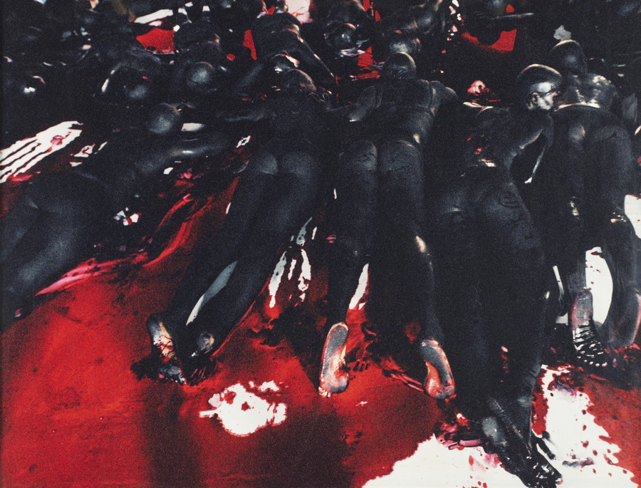 A Venezia, Vanessa Beecroft, ha approfondito il concetto di tableau vivant dandogli forma in modo letterale: dipingendo una tela enorme con il simulacro del sangue, schizzato sul corpo di trenta donne africane, stese sulla tela stessa. Si possono intravedere riferimenti a Jackson Pollock e ai suoi dripping, ma anche a Hermann Nitsch e all’Azionismo.