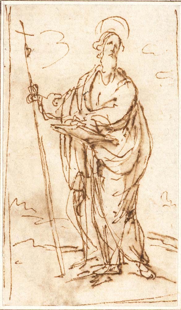 Scuola napoletana del XVII secolo Studio di Santo China su carta mm 80x50 - con cornice cm 21x17,5