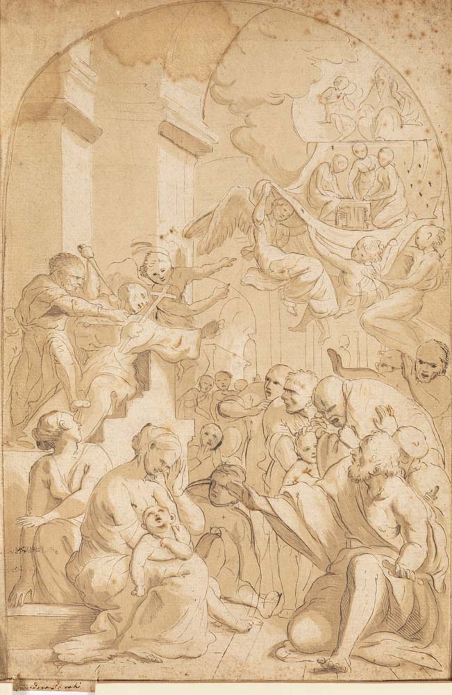 Pietro Testa (dapres) Martirio di Sant'Angelo Carmelitano Il foglio riprende un disegno di Pietre Testa conservato anticamente nel Gabinetto di Pierre Crozat