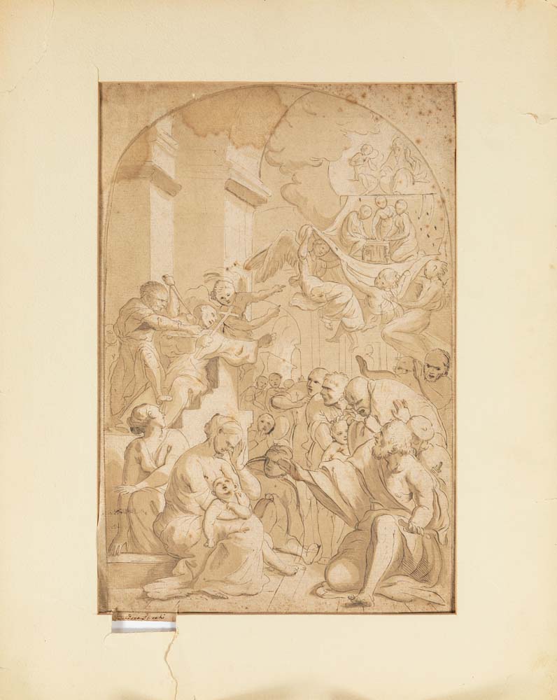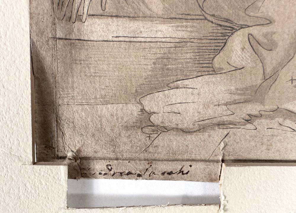 Iscritto in basso a sinistra "Andrea Sacchi" Penna e inchiostro bruno acquerellato mm 385x260 - con passepartout cm 50x41