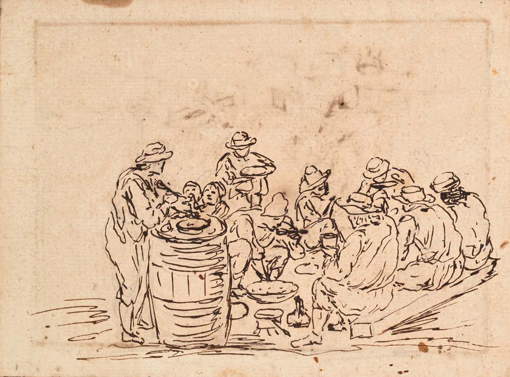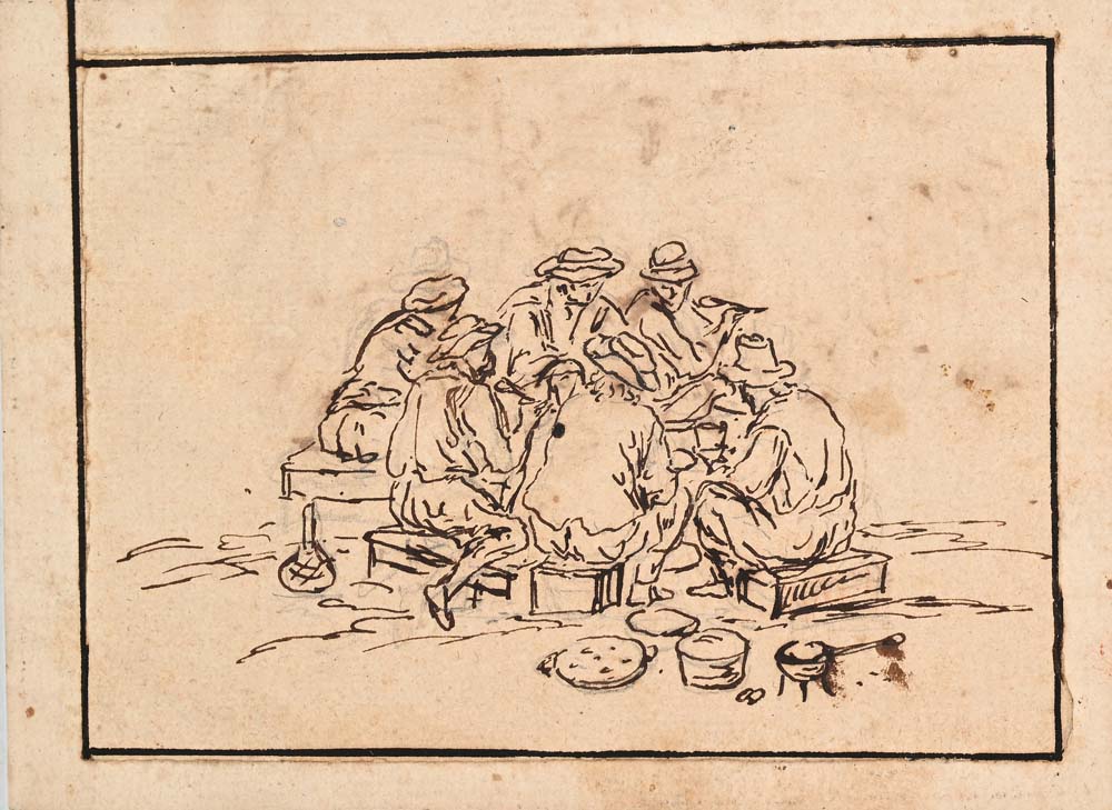 Scuola olandese del XVII secolo Verso: Scena di osteria - Recto: Pranzo all'osteria China su carta mm 110x150