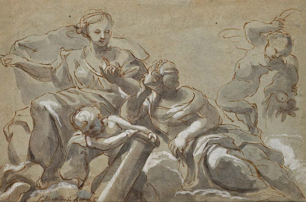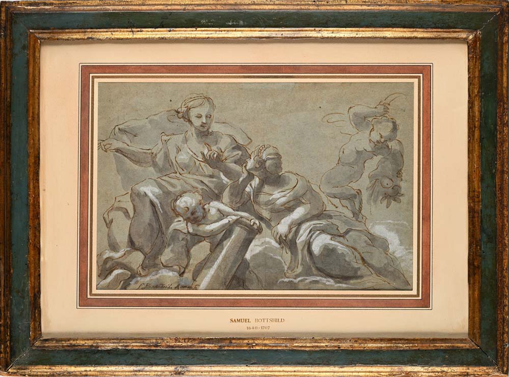 Samuel Bottschild Studio per Allegoria della Fortezza Firmato in basso a sinistra "S. Bottschild Roma f." China, inchiostro bruno acquerellato e biacca su carta mm 250x380 - con cornice cm 44x59