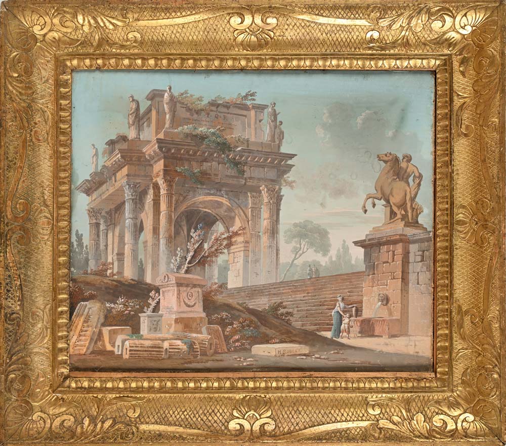 Lot 26 | Hubert Robert (attribuito a) Capriccio con rovine classiche Firmato 'H....
