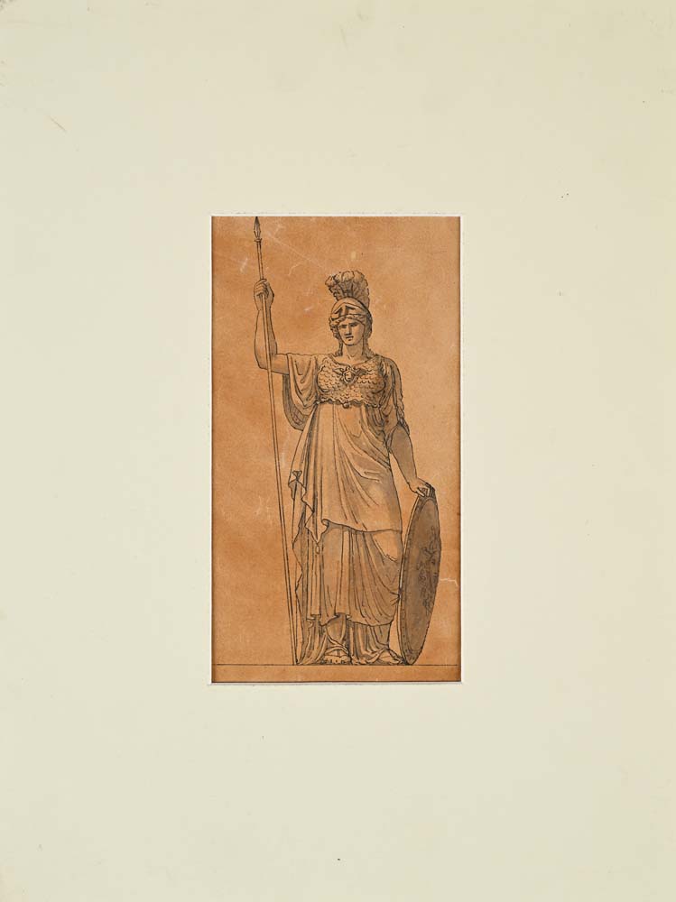 Scuola neoclassica Minerva China e inchiostro acquerellato su carta mm...