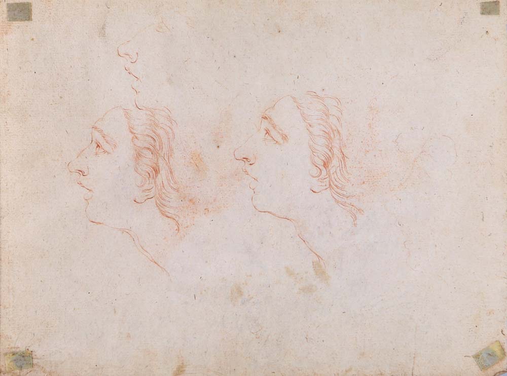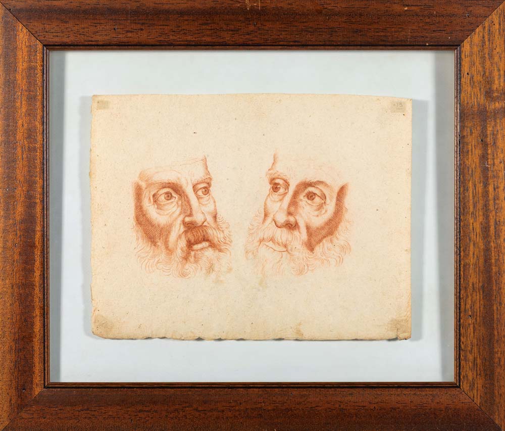 Pittore Accademico degli inizi del XIX secolo Recto: Studi di due volti maschili con barba, Verso: Studi di due profili femminili Sanguigna su carta mm 210x280 - con cornice cm 39x45