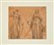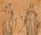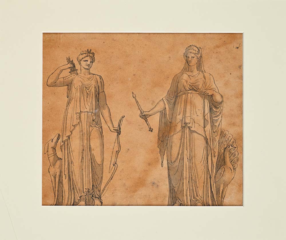 Scuola neoclassica Studi di Diana e Giunone China acquerellata su carta mm 185x215 - con passepartout 24x29