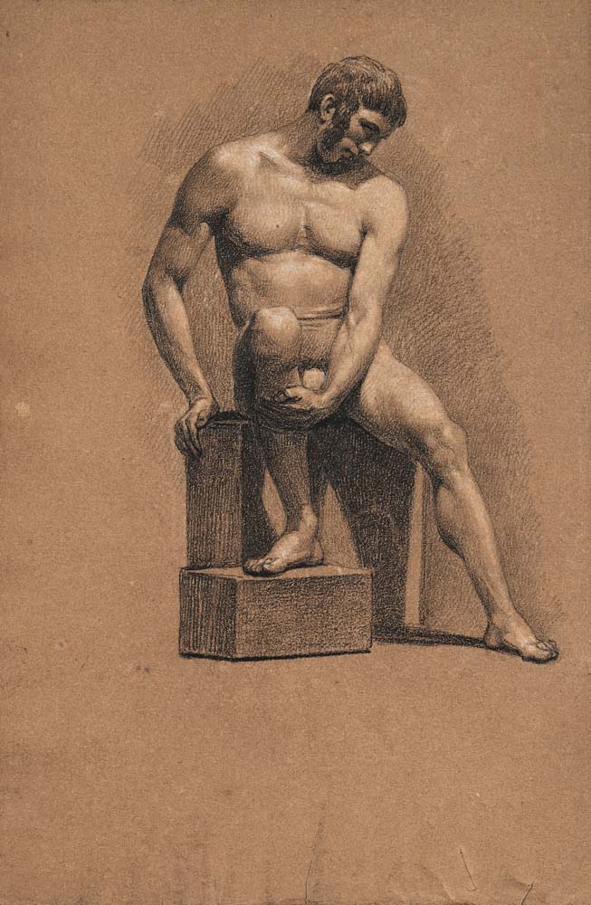 Scuola neoclassica milanese Studio di nudo maschile matita e biacca su carta mm 220x150