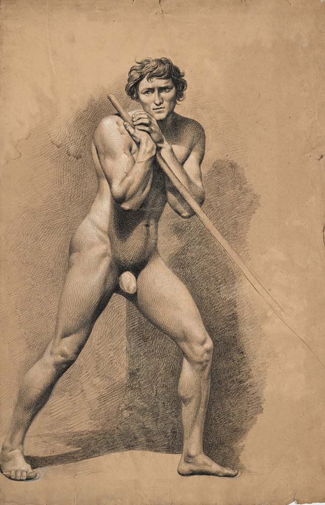 Scuola neoclassica milanese Studio di nudo virile con bastone Carboncino e biacca su carta mm 450x290