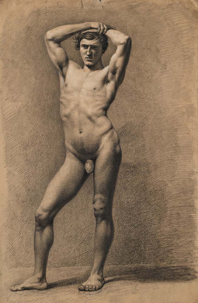 Scuola neoclassica milanese Studio di nudo virile Carboncino e biacca su carta mm 455x300