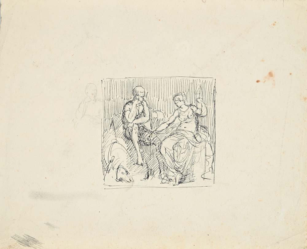 Scuola Italiana del XIX secolo Penelope e Ulisse China e matita su carta mm 240x295