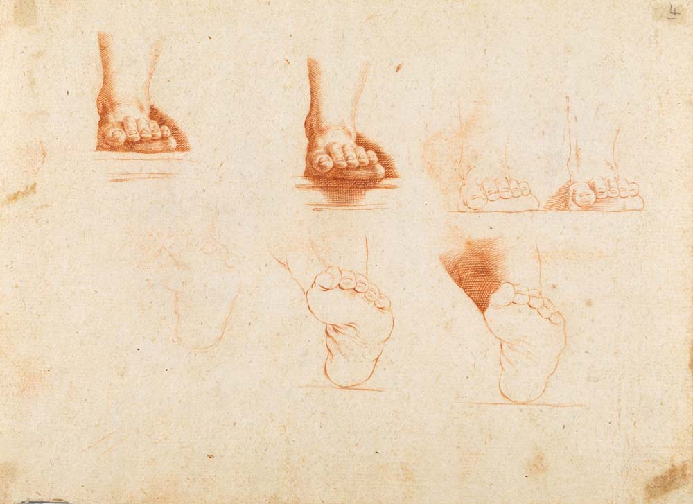 Pittore Accademico degli inizi del XIX secolo Studi di piedi Sanguigna su...