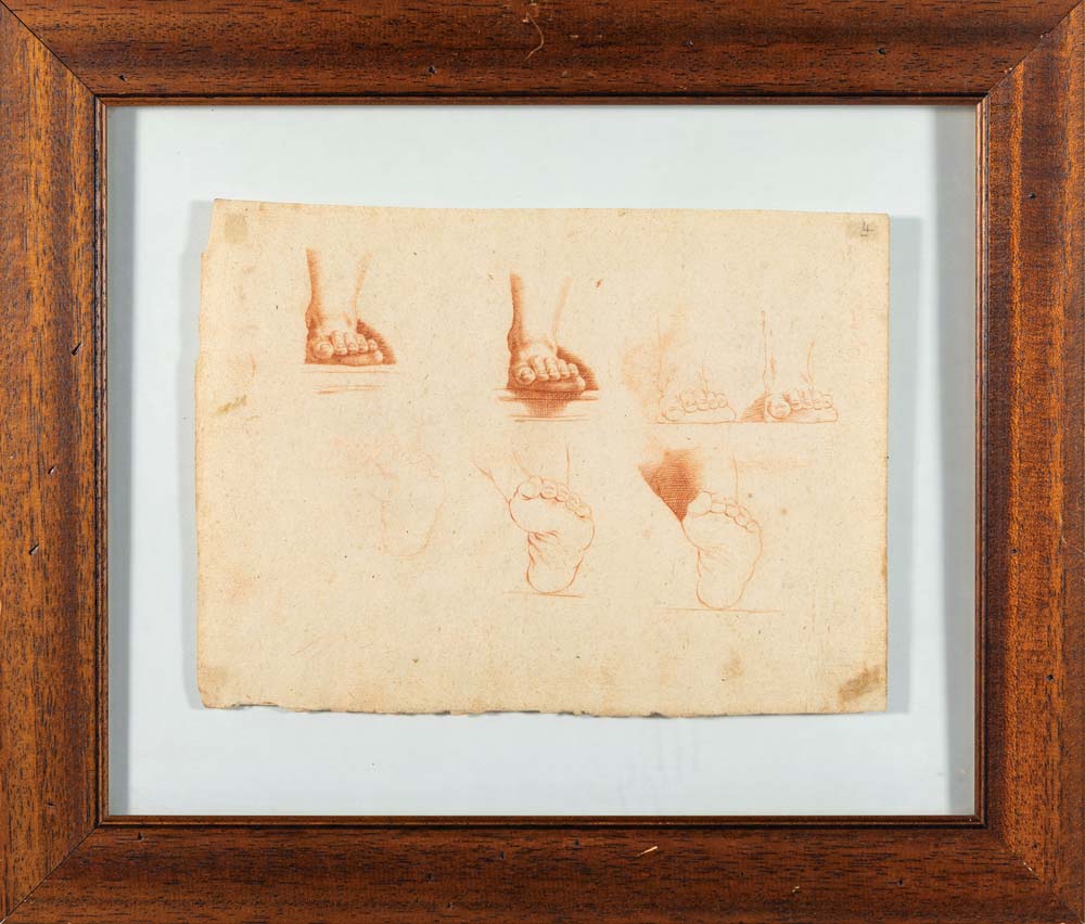 Pittore Accademico degli inizi del XIX secolo Studi di piedi Sanguigna su carta mm 200x280 - con cornice cm 38x45