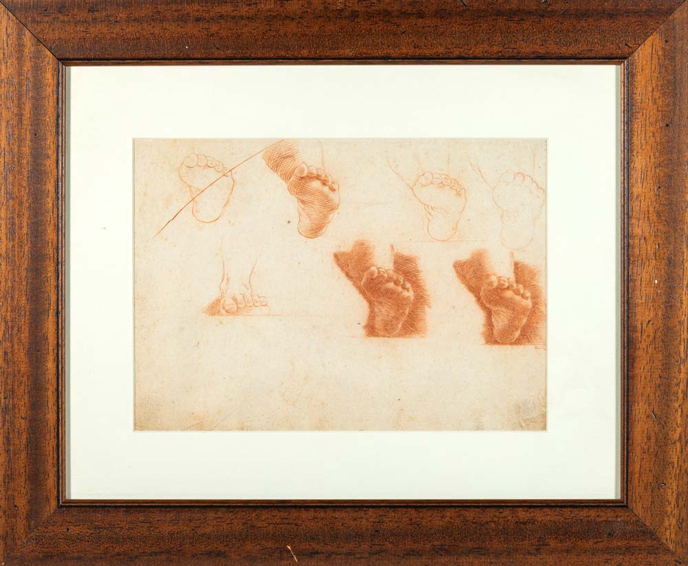 Pittore Accademico degli inizi del XIX secolo Studi di piedi Sanguigna su carta mm 190x260 - con cornice cm 38x46