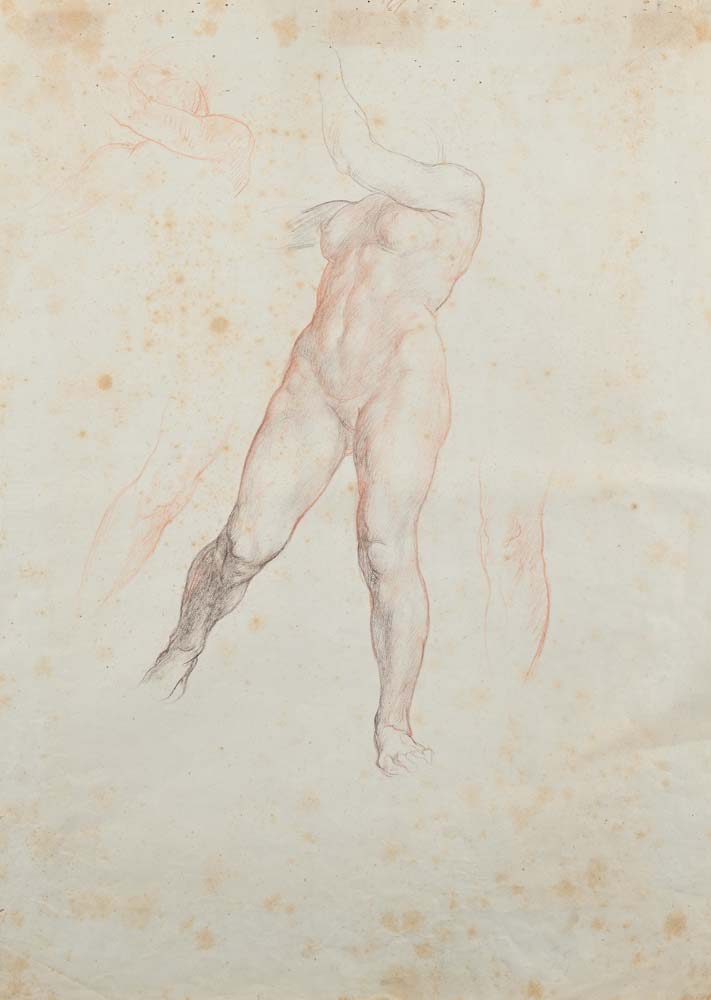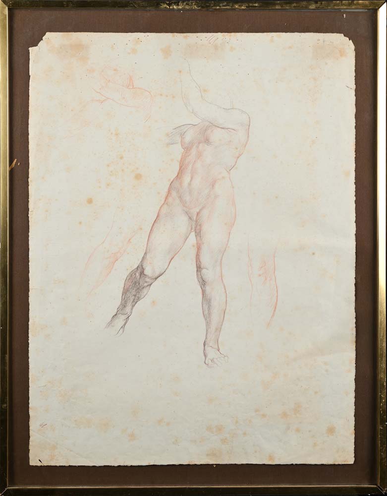 Scuola Italiana del XIX secolo Nudo femminile accademico Sanguigna e matita...