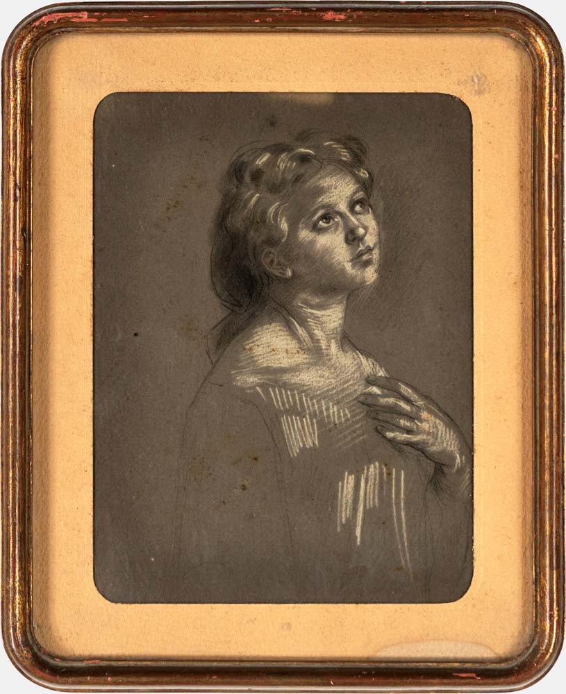 Andrea Appiani (ambito di) Studio di volto femminile Provenienza: Collezione Chiaramonte Bordonaro Pietra nera e gesso bianco su carta mm 240x178 – con cornice cm 32x26,5