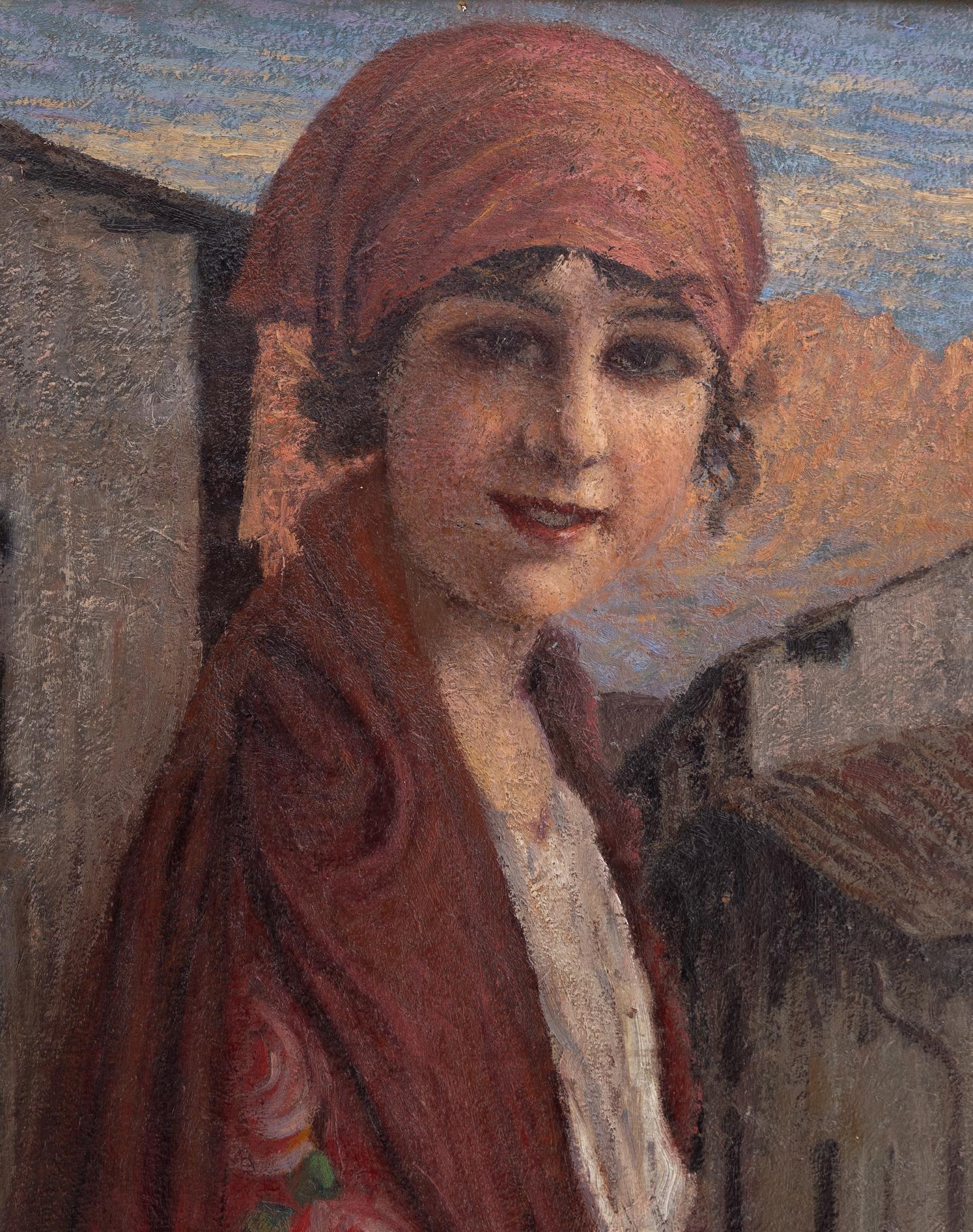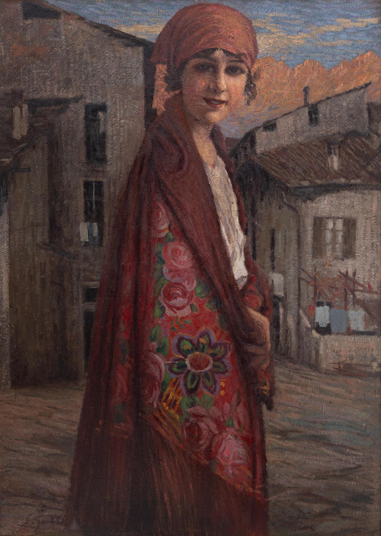 Edoardo Galli - Ragazza Lecchese - Napoli 1854 - 1920 - Olio su cartone cm 96x68 - Edoardo Galli nacque a Napoli nel 1854 e divenne uno dei pittori italiani più apprezzati del suo tempo. Si formò sotto la guida di Antonio Licata e Domenico Morelli, due maestri che gli trasmisero la solidità accademica e un profondo legame con la tradizione artistica. Tuttavia, Galli seppe coniugare questa formazione classica con un'interpretazione personale della realtà, rendendo la sua pittura distintiva per la luminosità e il realismo poetico.La sua produzione artistica spaziò tra ritratti, scene di genere e paesaggi, con una particolare attenzione ai dettagli e alla vita quotidiana. Nei ritratti, Galli riuscì a cogliere non solo l’aspetto esteriore dei suoi soggetti, ma anche le loro sfumature psicologiche, dando una dimensione emotiva profonda alle sue opere. Le scene di genere, invece, erano vivaci e piene di narrazione, sempre intrise di una sottile sensibilità verso la vita popolare. Una delle sue opere più note, "Trionfo del Tasso", si ispira alla letteratura rinascimentale, mentre “Scorcio di Napoli” è un omaggio alla sua città, catturata con maestria nella sua luce e atmosfera uniche.Galli partecipò attivamente alla vita artistica del suo tempo, esponendo in numerose mostre e ricevendo diversi riconoscimenti per la qualità delle sue opere. Nonostante le sue radici nella tradizione, la sua pittura mostrava anche una sensibilità moderna, capace di trasmettere le emozioni più intime dei soggetti che ritraeva.Morì nel 1920Edoardo Galli nacque a Napoli nel 1854 e divenne uno dei pittori italiani più apprezzati del suo tempo. Si formò sotto la guida di Antonio Licata e Domenico Morelli, due maestri che gli trasmisero la solidità accademica e un profondo legame con la tradizione artistica. Tuttavia, Galli seppe coniugare questa formazione classica con un'interpretazione personale della realtà, rendendo la sua pittura distintiva per la luminosità e il realismo poetico.La sua produzione artistica spaziò tra ritratti, scene di genere e paesaggi, con una particolare attenzione ai dettagli e alla vita quotidiana. Nei ritratti, Galli riuscì a cogliere non solo l’aspetto esteriore dei suoi soggetti, ma anche le loro sfumature psicologiche, dando una dimensione emotiva profonda alle sue opere. Le scene di genere, invece, erano vivaci e piene di narrazione, sempre intrise di una sottile sensibilità verso la vita popolare. Una delle sue opere più note, "Trionfo del Tasso", si ispira alla letteratura rinascimentale, mentre “Scorcio di Napoli” è un omaggio alla sua città, catturata con maestria nella sua luce e atmosfera uniche.Galli partecipò attivamente alla vita artistica del suo tempo, esponendo in numerose mostre e ricevendo diversi riconoscimenti per la qualità delle sue opere. Nonostante le sue radici nella tradizione, la sua pittura mostrava anche una sensibilità moderna, capace di trasmettere le emozioni più intime dei soggetti che ritraeva.Morì nel 1920.