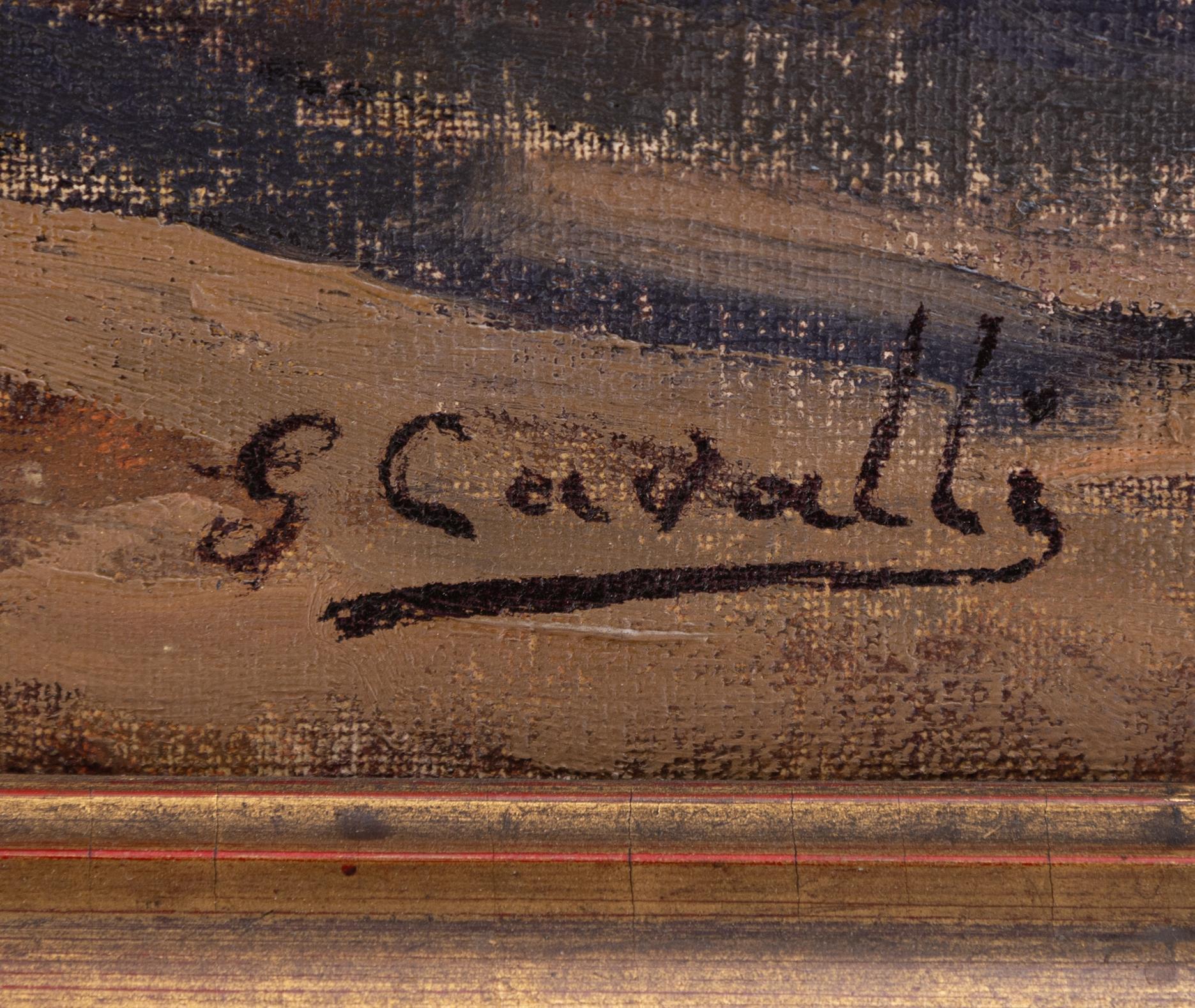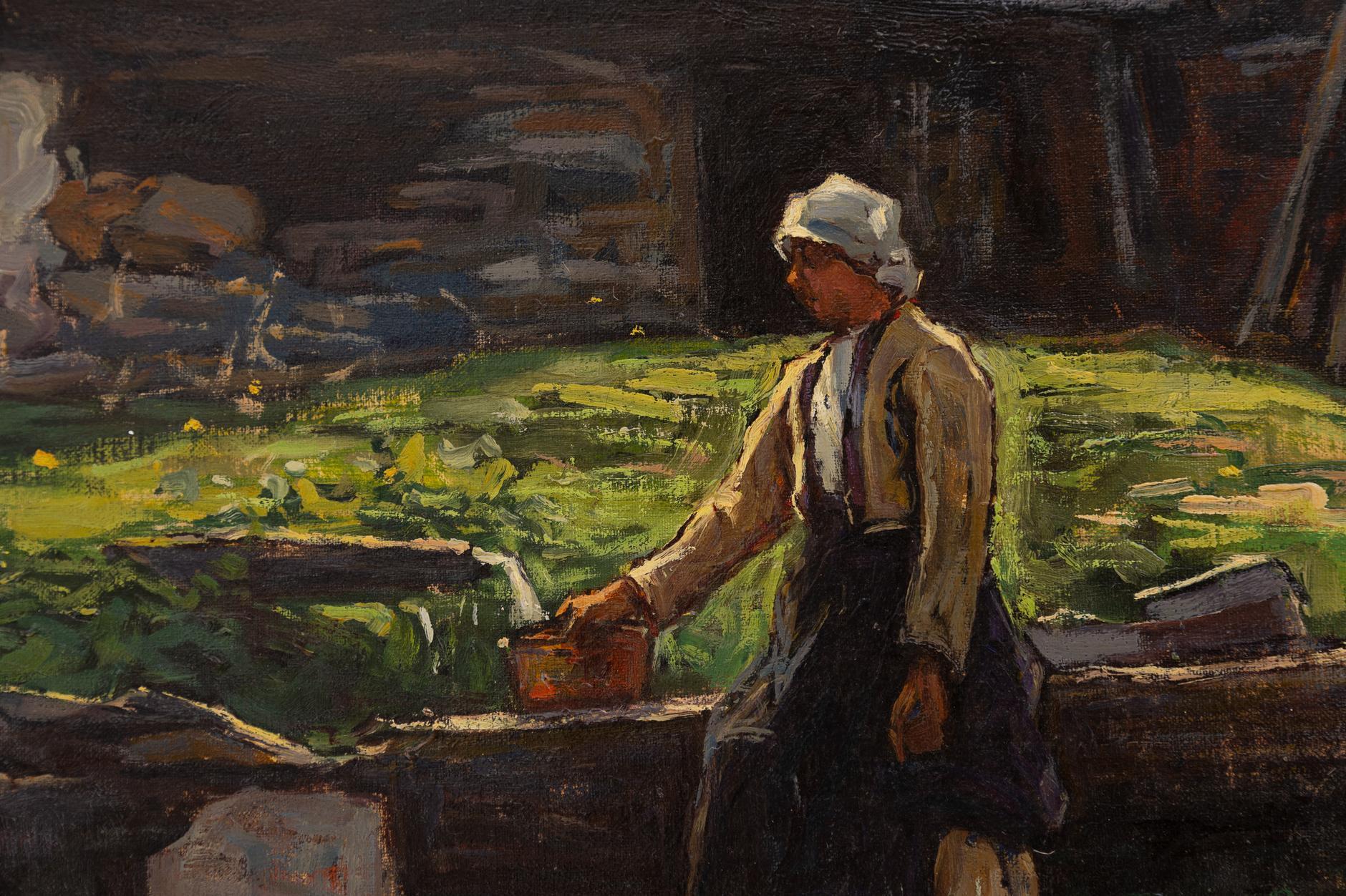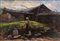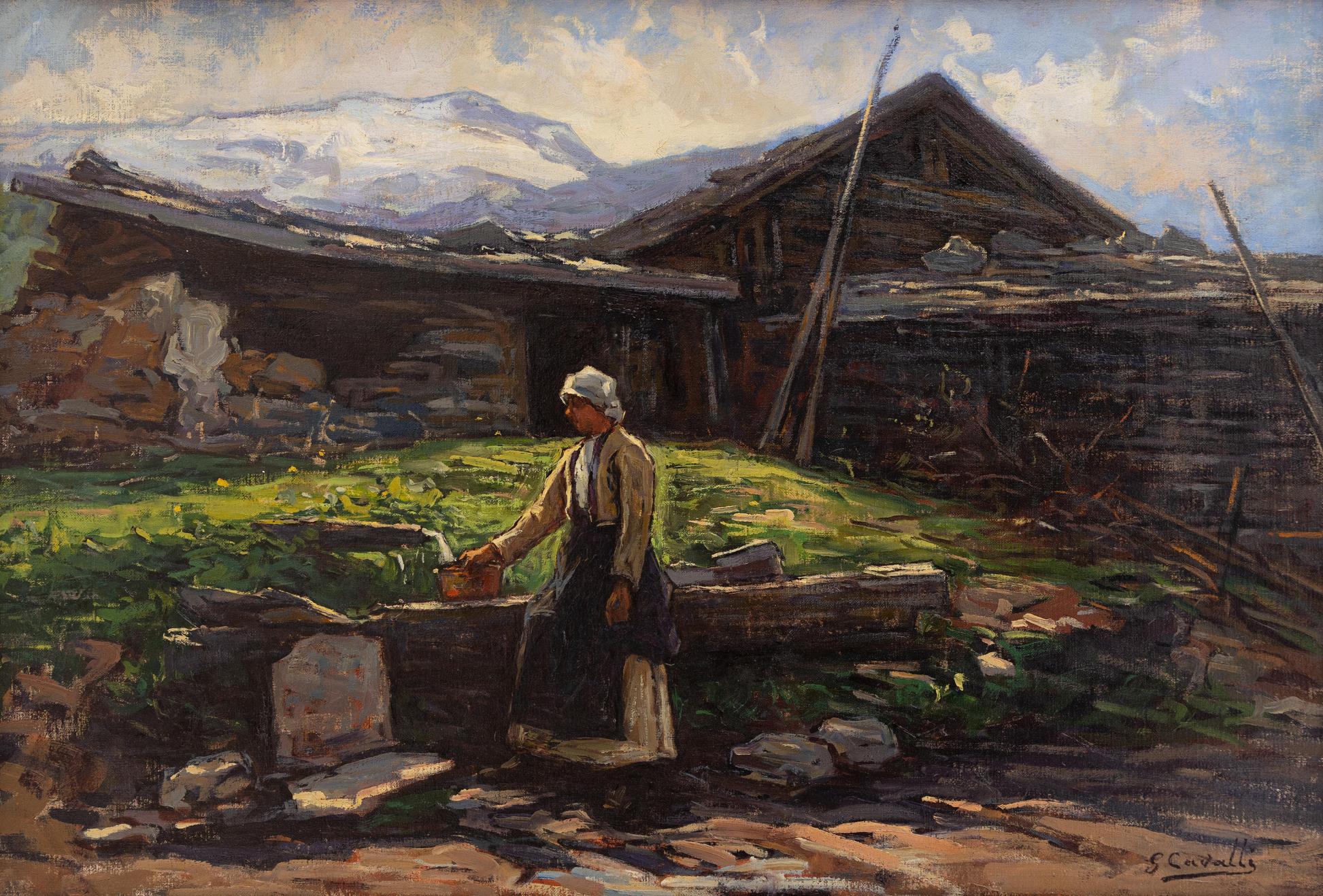 Giovanni Cavalli - La massaia - Torino 1865 - Milano 1932 - Olio su tela cm 55x80 - Giovanni Cavalli nacque a Torino nel 1865 e si spense a Milano il 6 settembre 1932. Allievo di Filippo Carcano, pittore noto per la sua attenzione al paesaggio e alla luce, Cavalli sviluppò uno stile che rifletteva l'influenza del maestro, pur mantenendo una sua personalità artistica distintiva.​La sua produzione si concentrò principalmente su paesaggi, con particolare attenzione a vedute costiere e scorci cittadini. Opere come "Scorcio portuale", che ritrae il porto di Genova con la Lanterna, il faro più alto del Mediterraneo, testimoniano la sua abilità nel catturare l'atmosfera e la luce dei luoghi rappresentati. Altre sue opere includono "Piccola valle", "Alla marina", "Pioggia", "Viottolo al sole", "Marina", "Viale in pieno sole" e "Fra gli ulivi".​Sebbene meno conosciuto in Italia, Cavalli ottenne riconoscimenti all'estero, partecipando a diverse esposizioni internazionali. Le sue opere sono state vendute in aste internazionali, con prezzi che variano in base alla dimensione e al mezzo utilizzato. Nel 2022, il suo dipinto "Il Porto di Genova" è stato venduto per 2.111 USD presso Casa d’Aste Santa Giulia.​Giovanni Cavalli morì a Milano nel 1932Giovanni Cavalli nacque a Torino nel 1865 e si spense a Milano il 6 settembre 1932. Allievo di Filippo Carcano, pittore noto per la sua attenzione al paesaggio e alla luce, Cavalli sviluppò uno stile che rifletteva l'influenza del maestro, pur mantenendo una sua personalità artistica distintiva.​La sua produzione si concentrò principalmente su paesaggi, con particolare attenzione a vedute costiere e scorci cittadini. Opere come "Scorcio portuale", che ritrae il porto di Genova con la Lanterna, il faro più alto del Mediterraneo, testimoniano la sua abilità nel catturare l'atmosfera e la luce dei luoghi rappresentati. Altre sue opere includono "Piccola valle", "Alla marina", "Pioggia", "Viottolo al sole", "Marina", "Viale in pieno sole" e "Fra gli ulivi".​Sebbene meno conosciuto in Italia, Cavalli ottenne riconoscimenti all'estero, partecipando a diverse esposizioni internazionali. Le sue opere sono state vendute in aste internazionali, con prezzi che variano in base alla dimensione e al mezzo utilizzato. Nel 2022, il suo dipinto "Il Porto di Genova" è stato venduto per 2.111 USD presso Casa d’Aste Santa Giulia.​Giovanni Cavalli morì a Milano nel 1932.