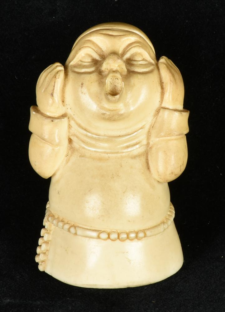 FERMACARTE in resina raffigurante frate cantore Francia, 1920 circa h cm 6