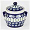 VASETTO CON COPERCHIO in ceramica decorato a motivi geometrici blu, verdi e rossi, cm 15x14x14